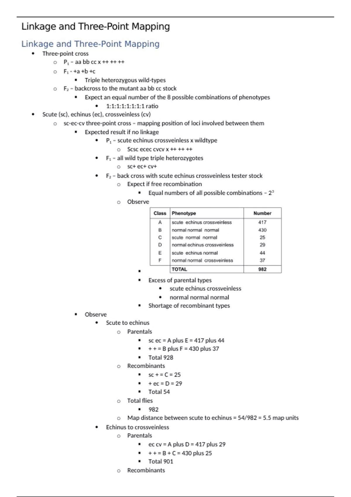 o Map distance between echinus and crossveinless = 81/982 = 8.2 map units
