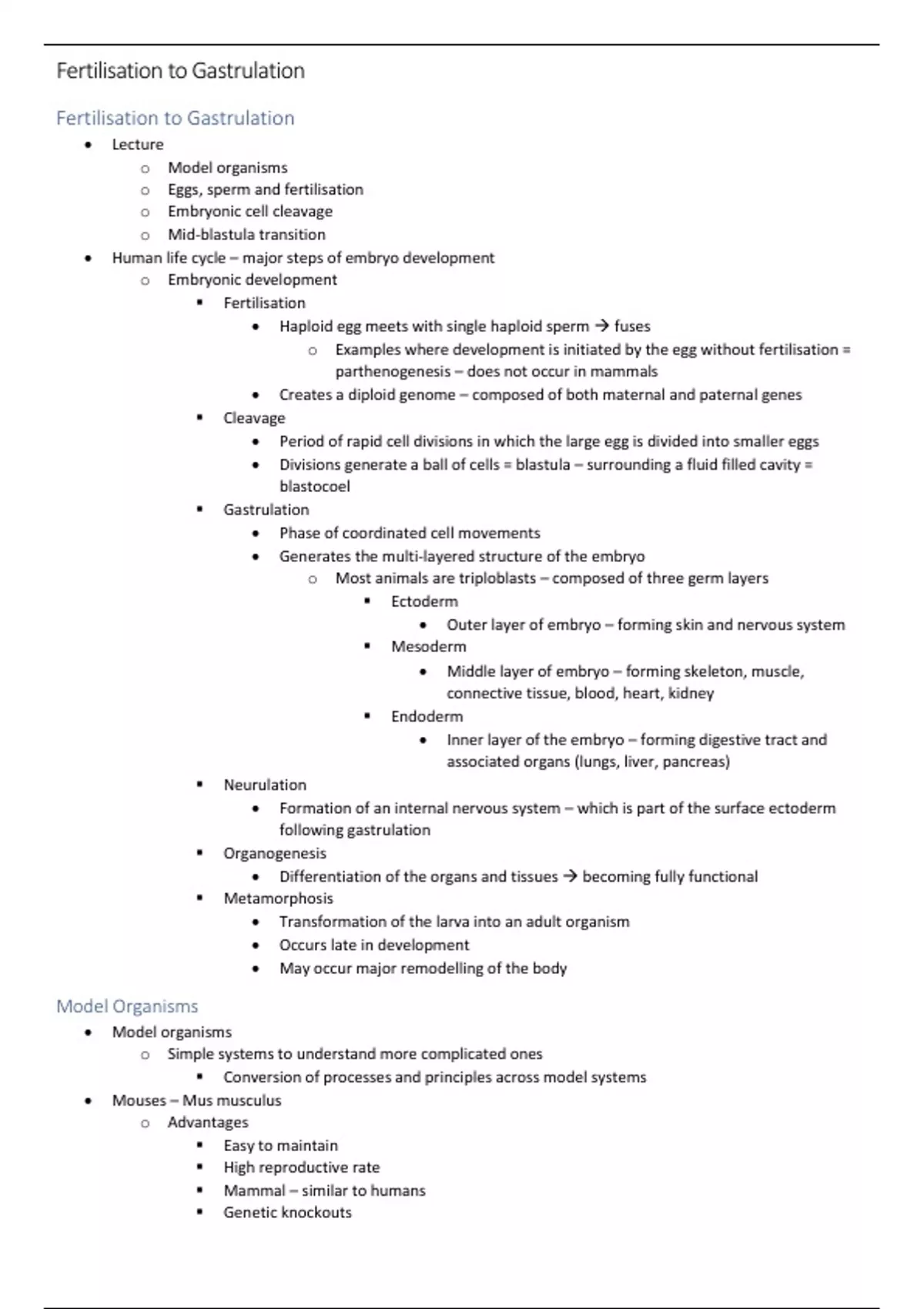 , Fertilisation to Gastrulation