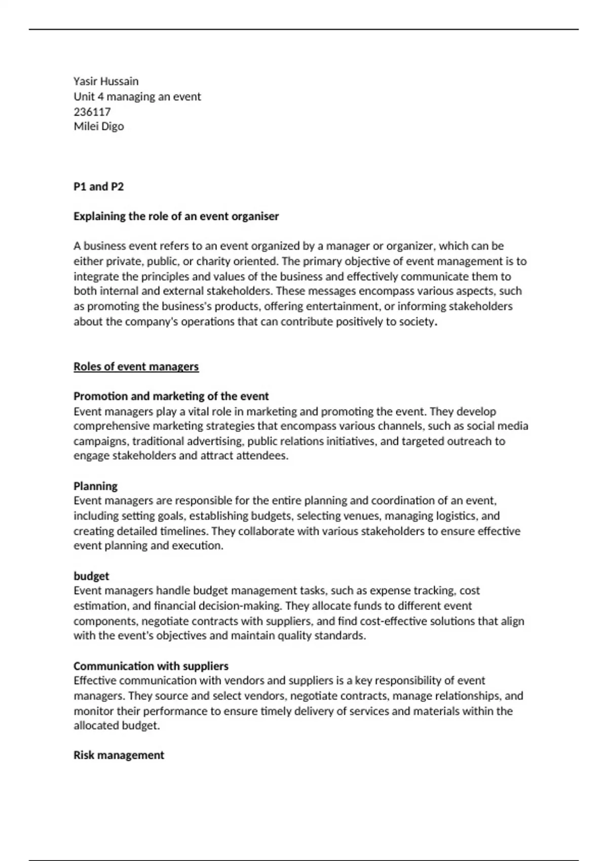 Unit 4 managing an event