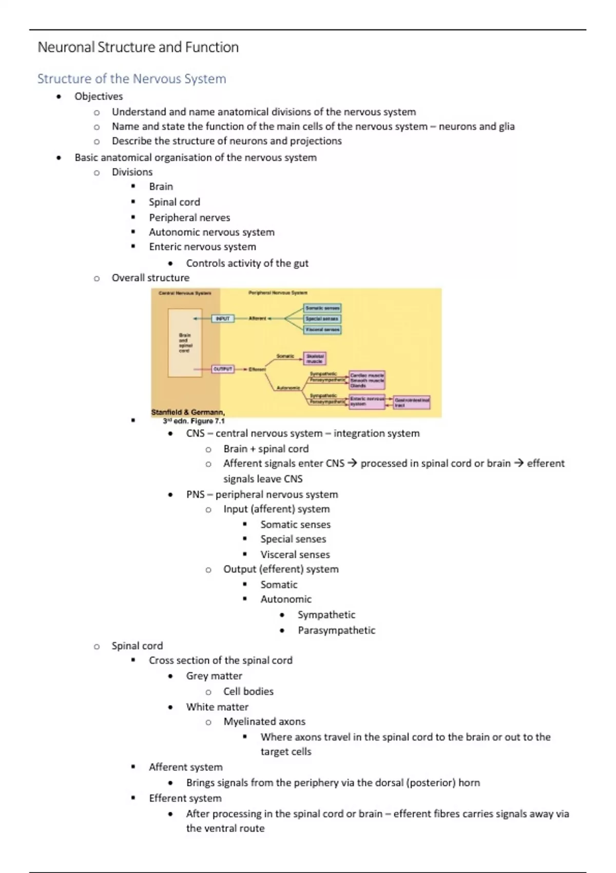 • Basic anatomical organisation of the nervous system