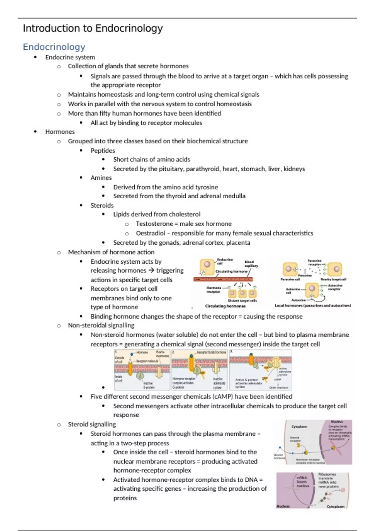 Introductory Mammalian Physiology (PHOL0002) Notes - Introduction to Endocrinology