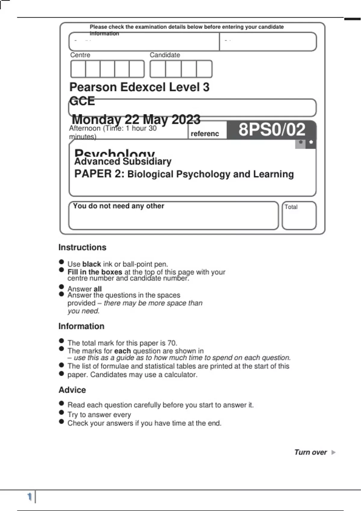 PAPER 2: Biological Psychology and Learning