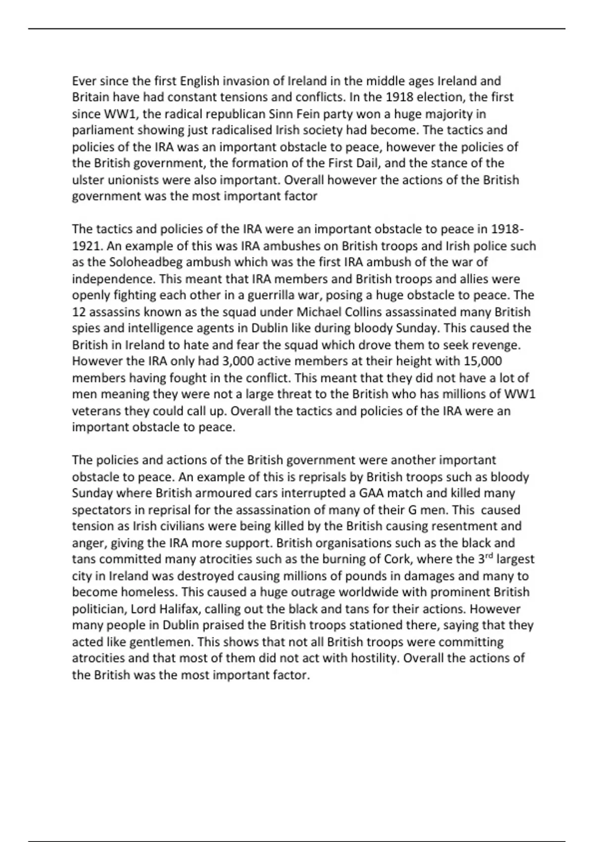 obstacle to peace. An example of this is reprisals by British troops such as bloody