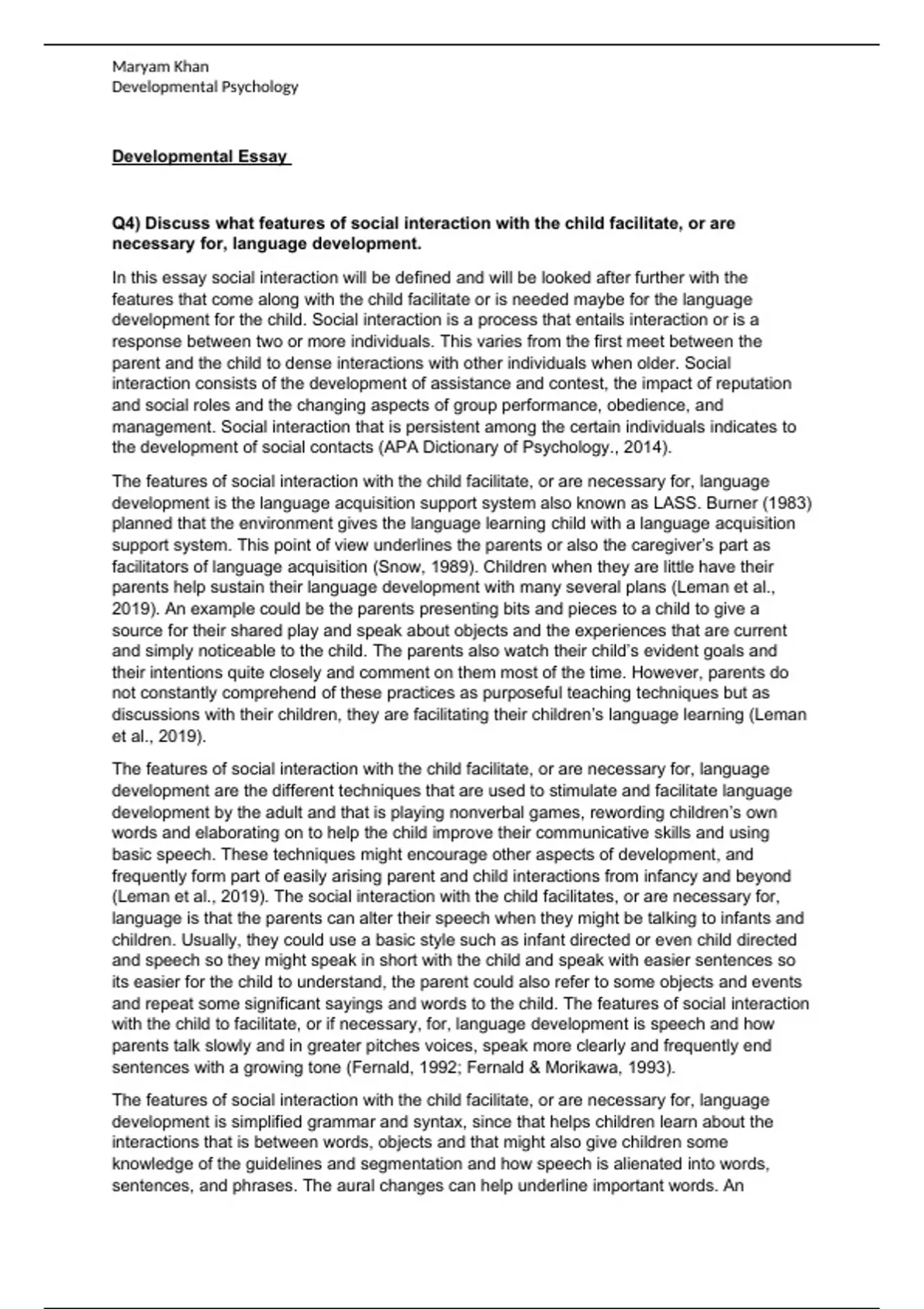 Q4) Discuss what features of social interaction with the child facilitate, or are
