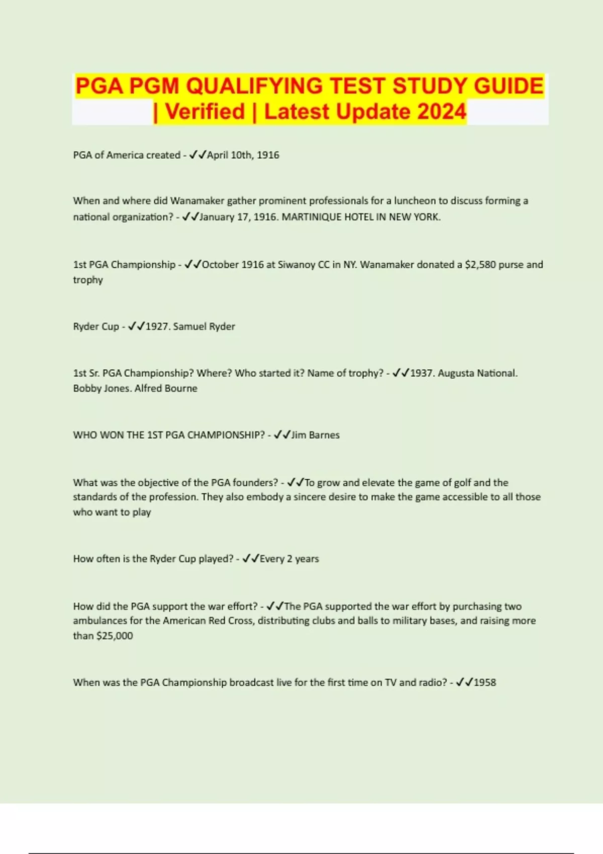 PGA PGM QUALIFYING TEST STUDY GUIDE | Verified | Latest Update 2024