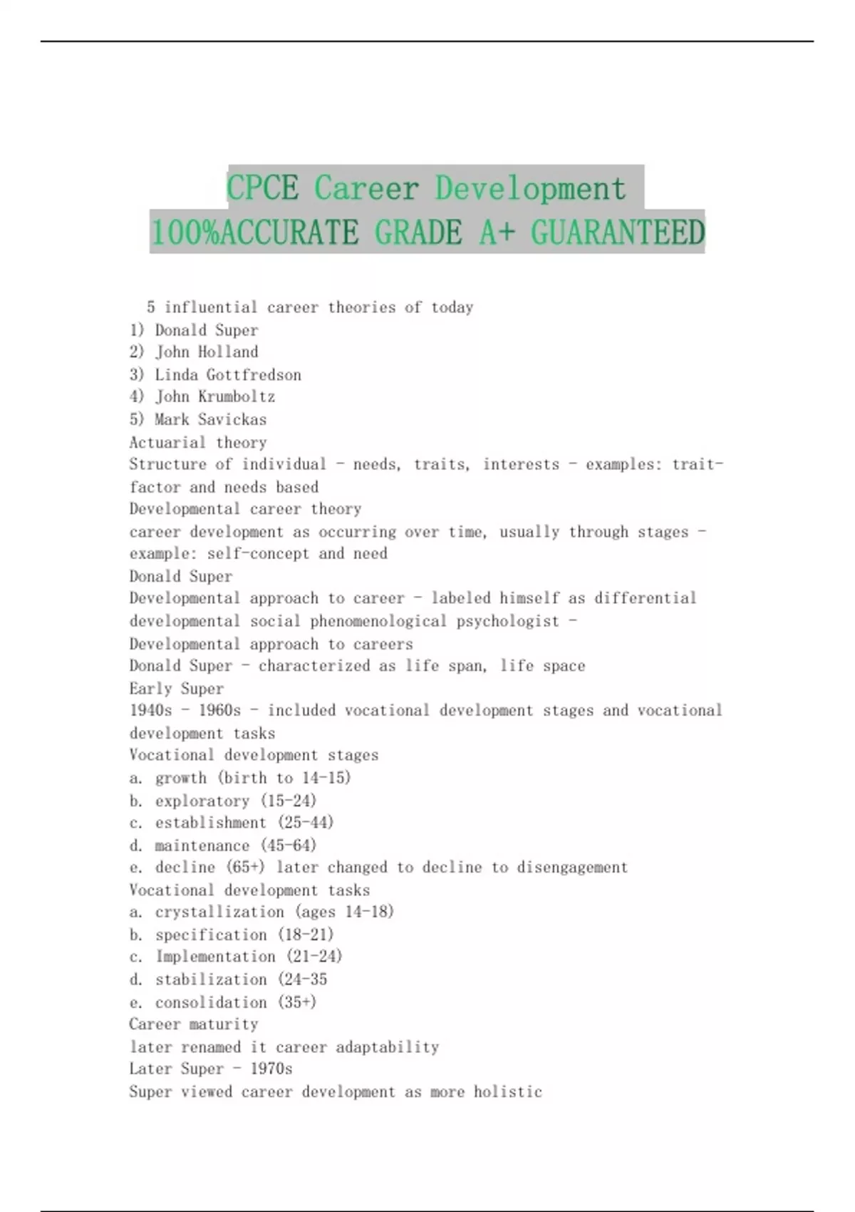 CPCE Career Development 100%ACCURATE GRADE A+ GUARANTEED