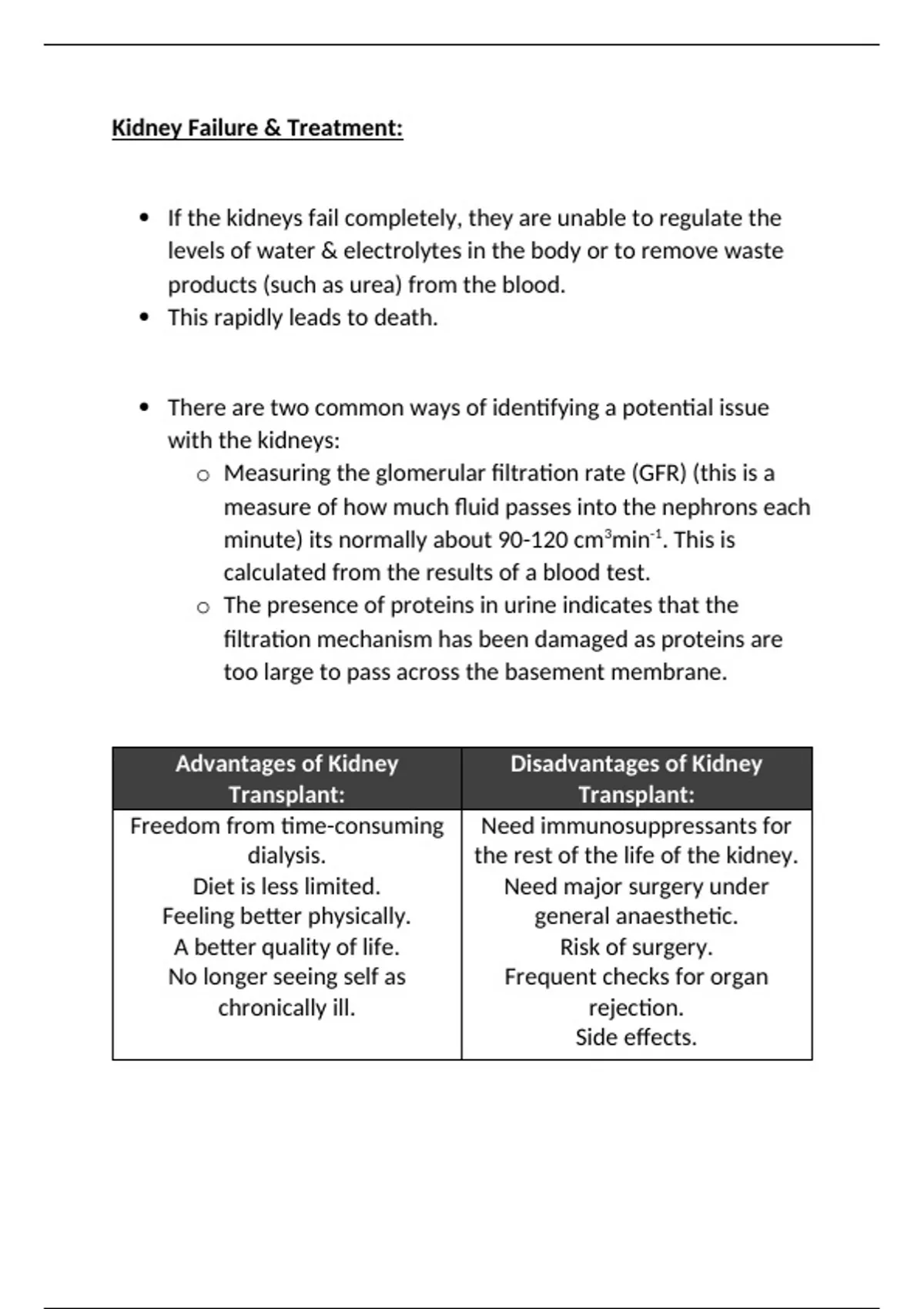 Revision notes on kidney failure. A level biology OCR A revision notes. Notes on module 5: Communication, homeostasis and energy. Summary/ information you need to memorize for a level biology OCR A exams.