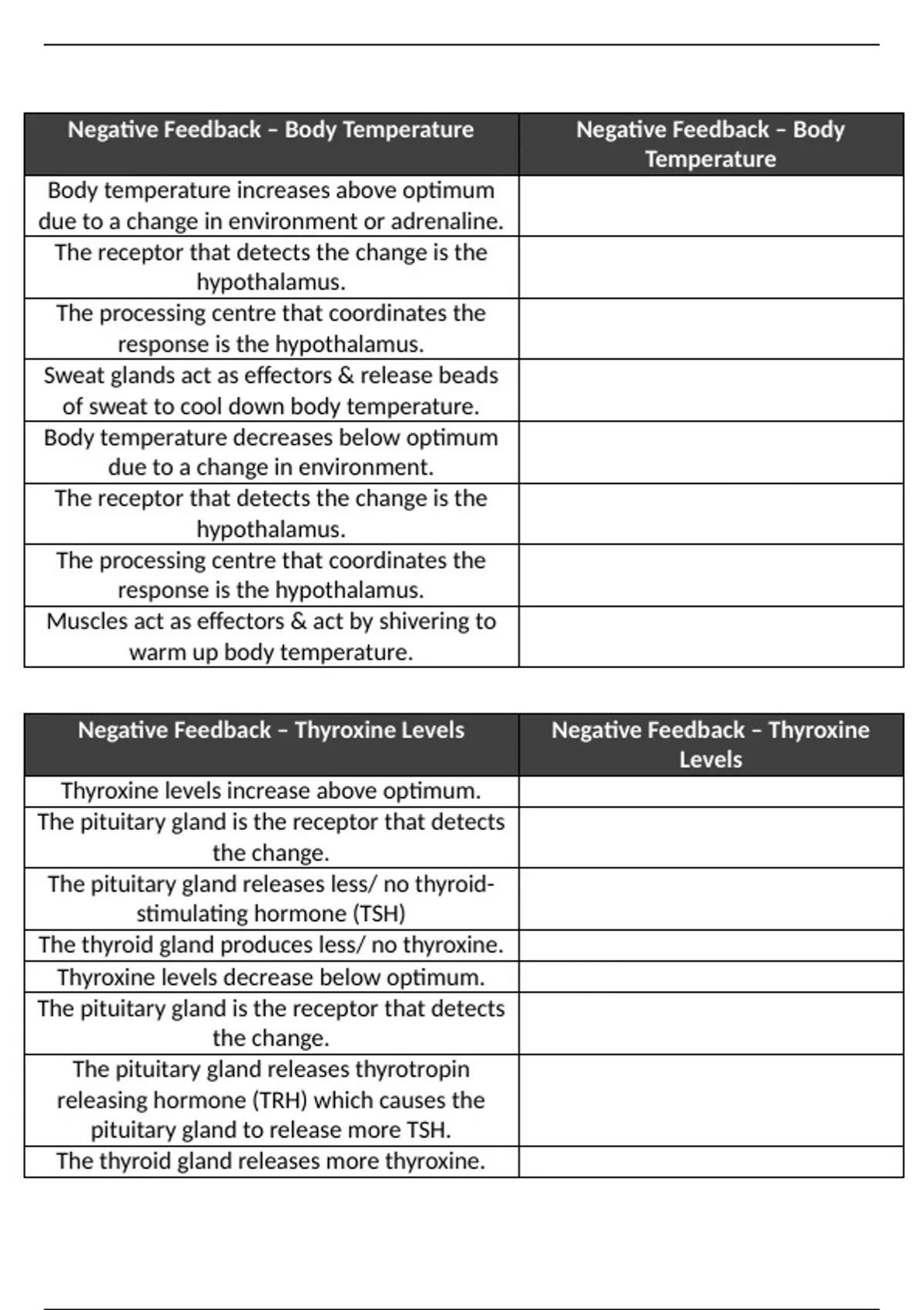 Negative Feedback – Thyroxine Levels Negative Feedback – Thyroxine