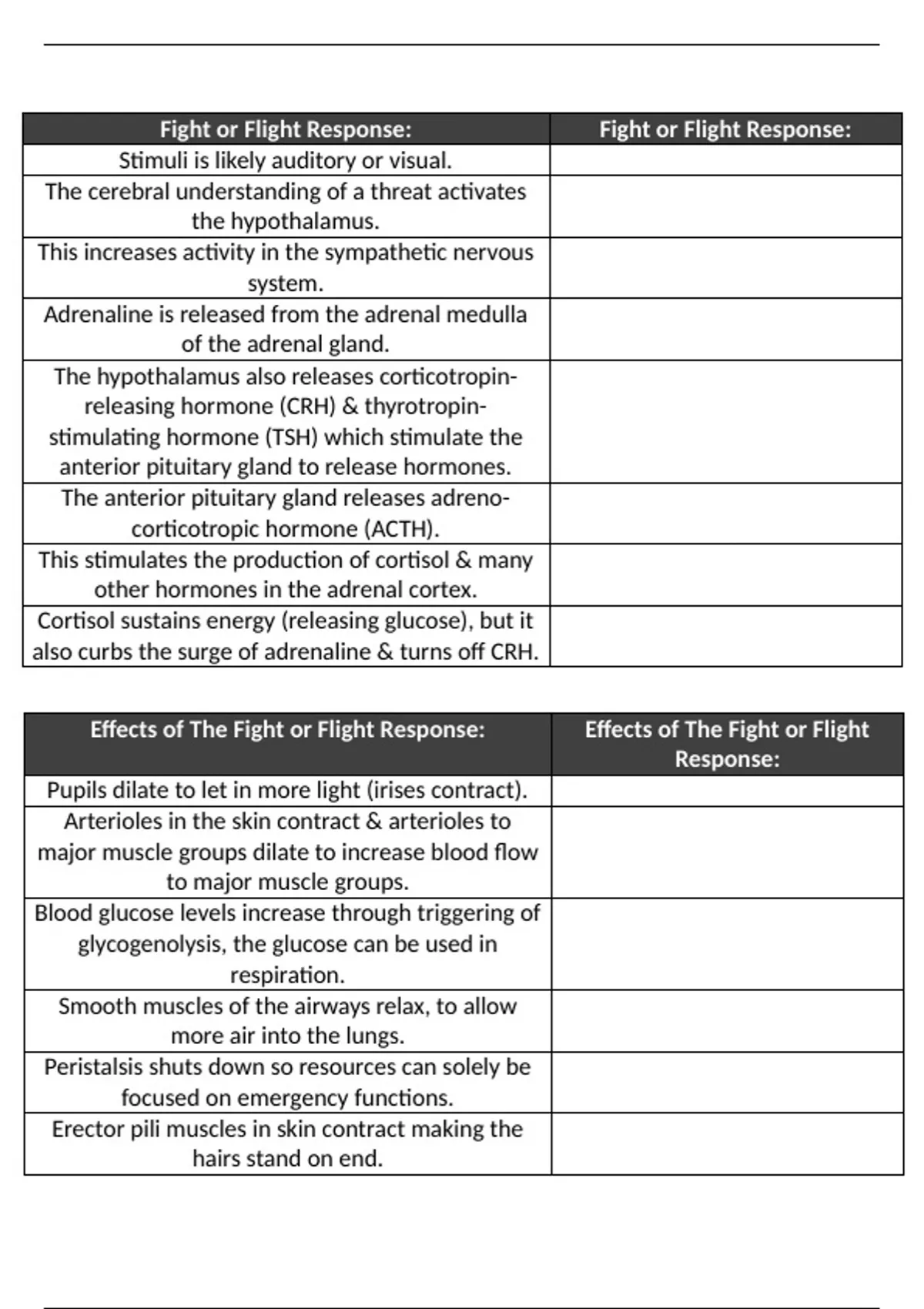 Fight or flight response revision flashcards. OCR A: A level biology revision notes. Module 5: Communication, Homeostasis and Energy. A* biology student's notes. Summary of key content to be memorised. Process that needs to be memorised from specification.