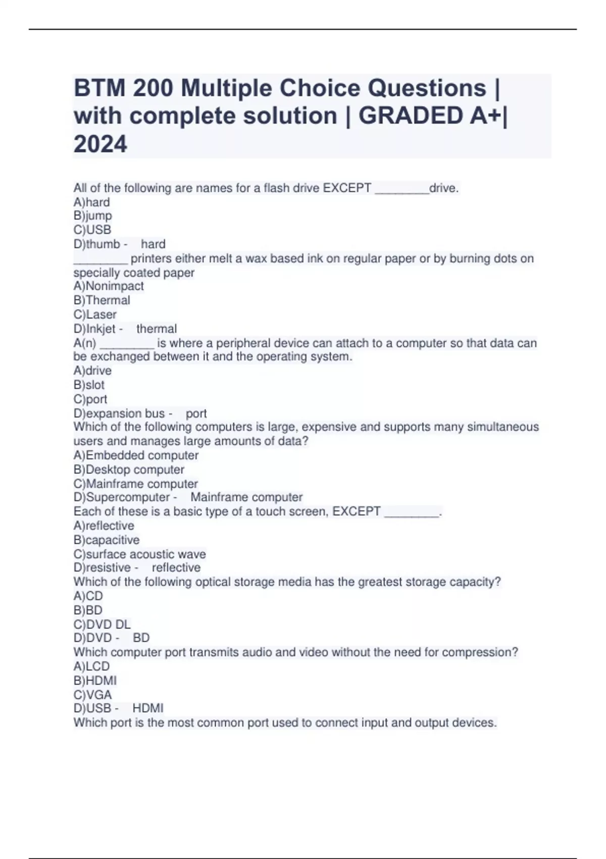 btm 200 multiple choice questions with complete