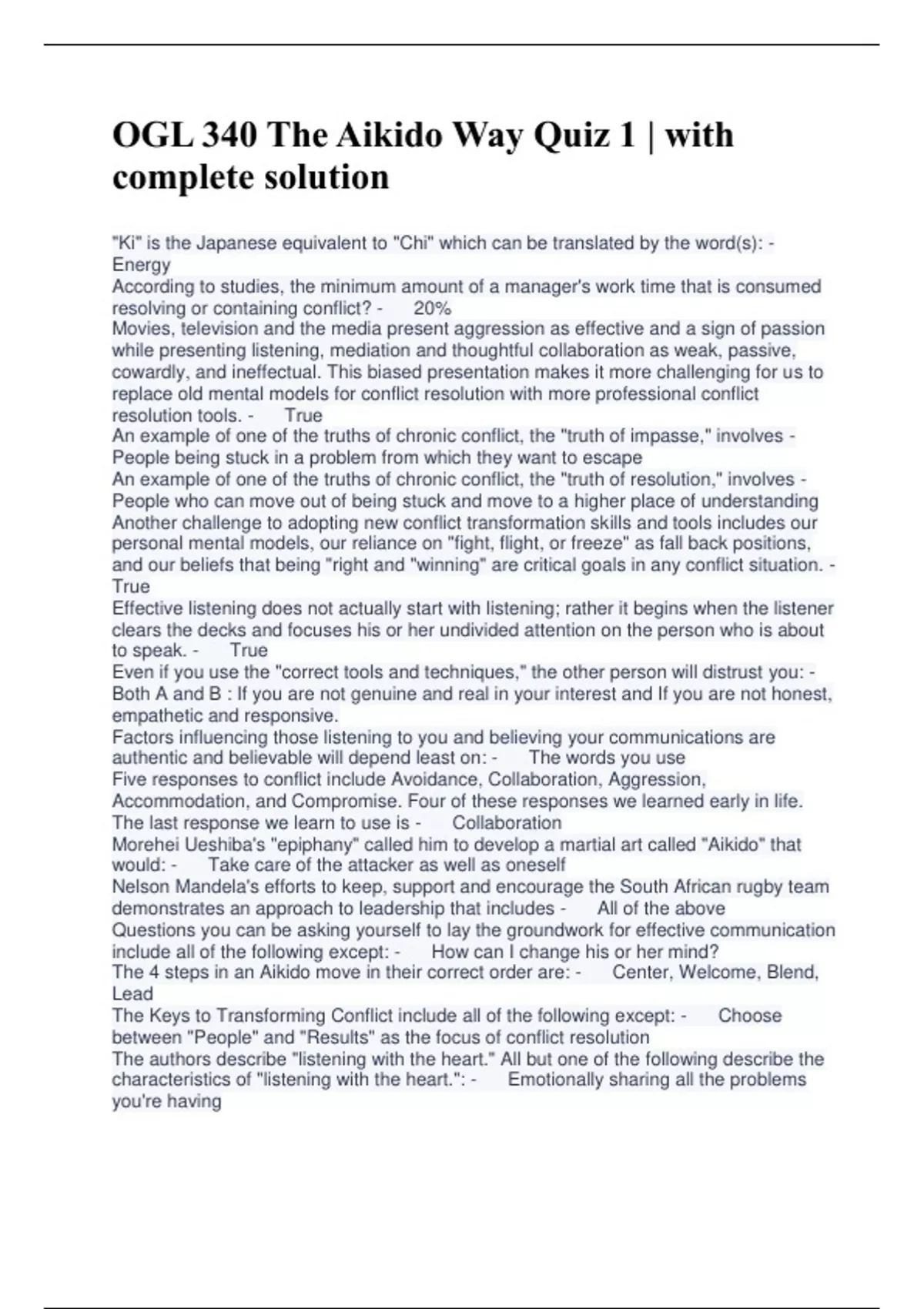 OGL 340 The Aikido Way Quiz 1 | with complete solution
