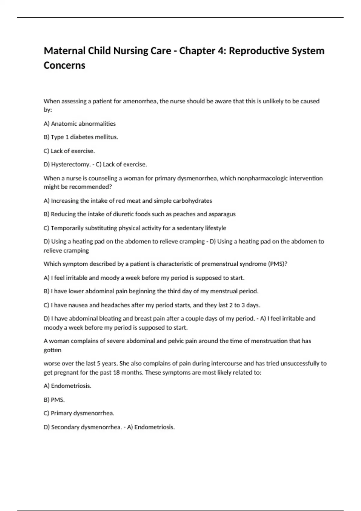 D) Secondary dysmenorrhea. - A) Endometriosis.