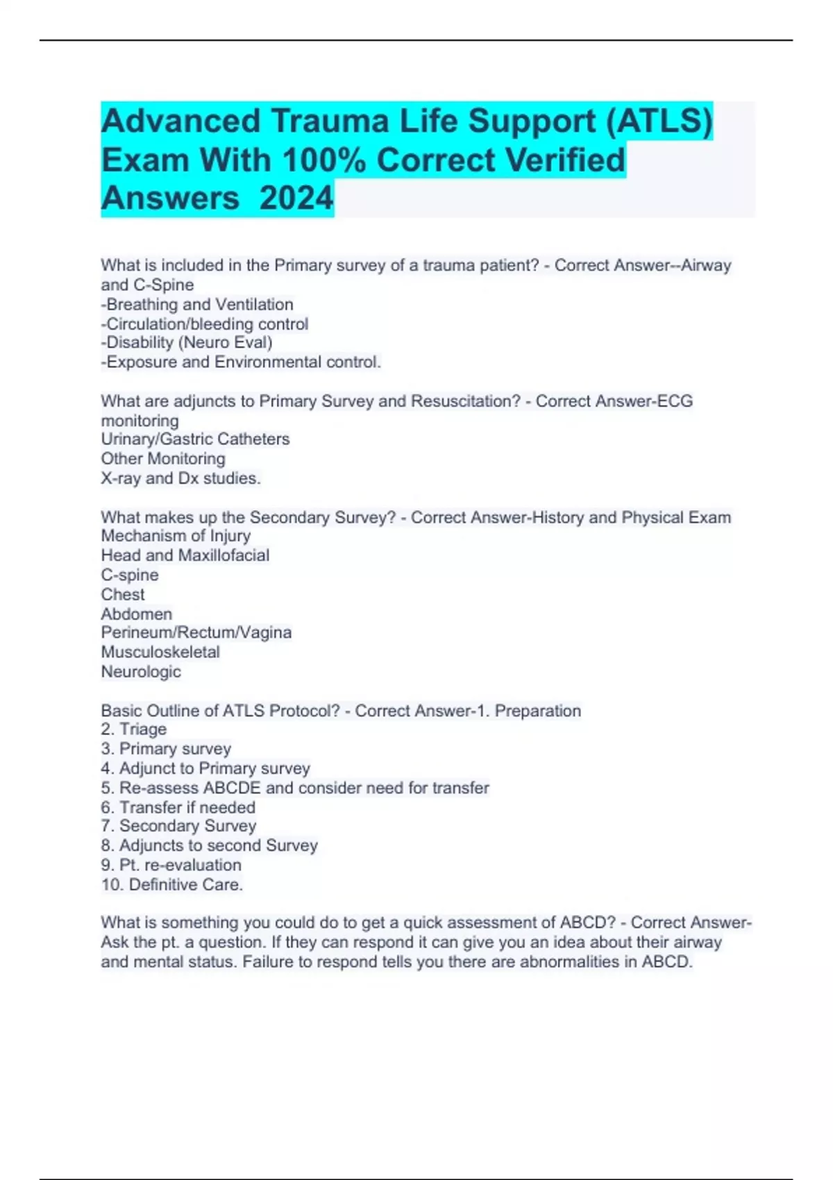 Advanced Trauma Life Support (ATLS) Exam With 100% Correct Verified Answers 2024
