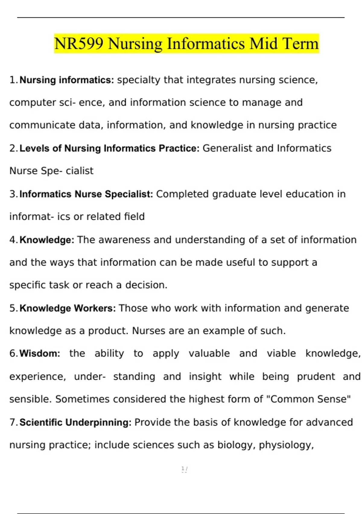 NR599 | NR 599 ACTUAL FINAL EXAM BUNDLED NR 599 / NR599 Midterm Exam (Latest 2024) Nursing Informatics for Advanced Practice - Chamberlain College