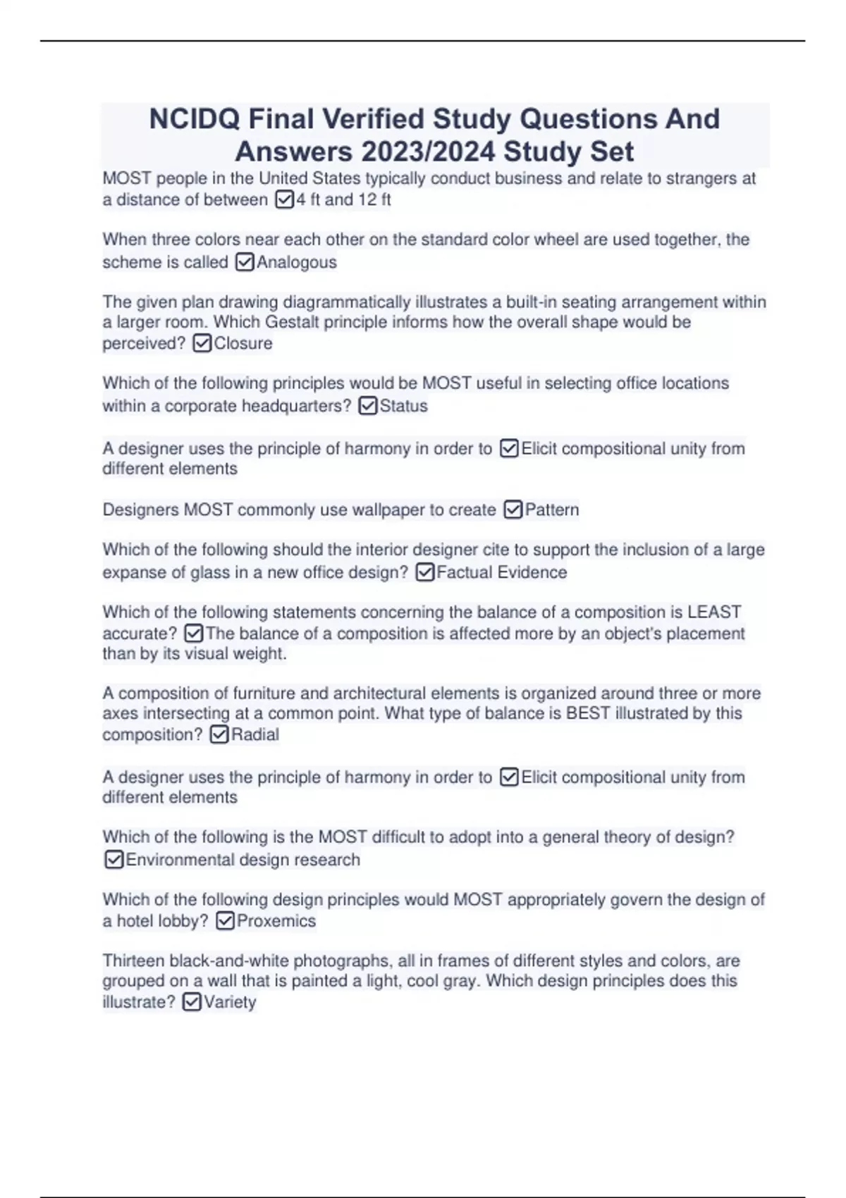 NCIDQ Final Verified Study Questions And Answers 2023/2024 Study Set