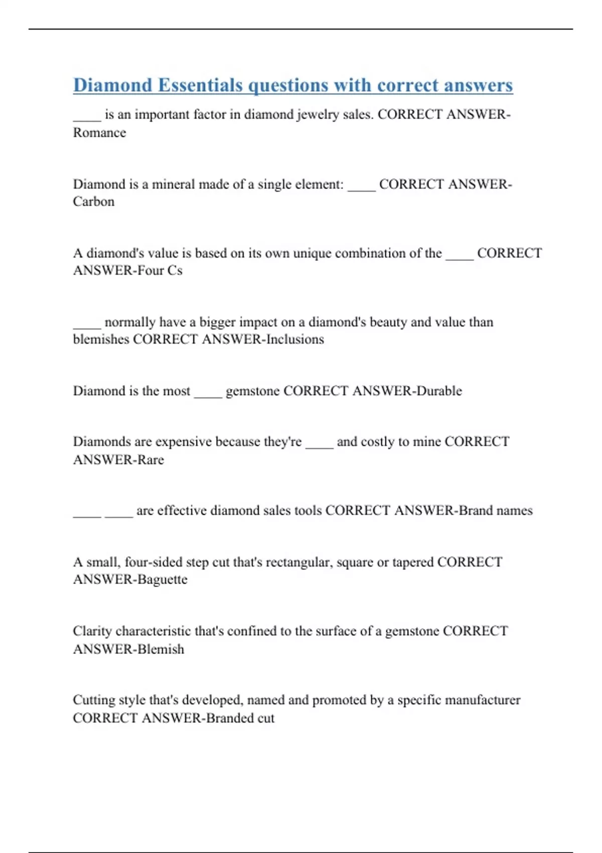 Diamond Essentials questions with correct answers