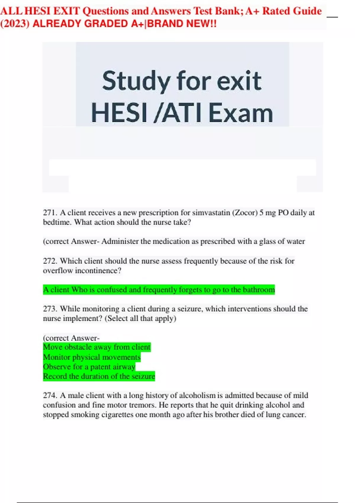 all hesi exit questions and answers test bank a