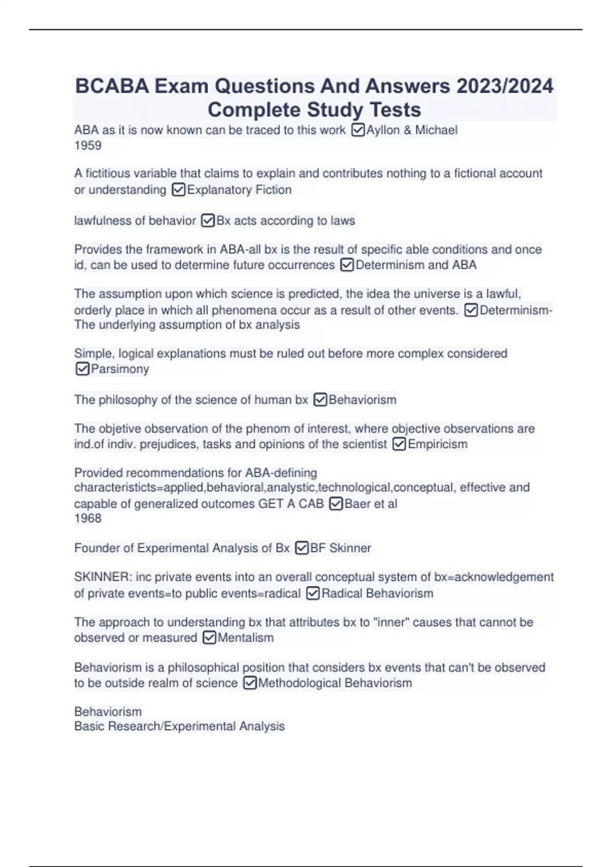 BCABA Exam Questions And Answers 2023/2024 Complete Study Tests BCABA Exam Questions And Answers 2023/2024 Complete Study Tests