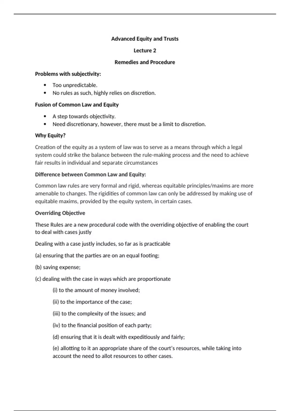 Remedies and Procedure