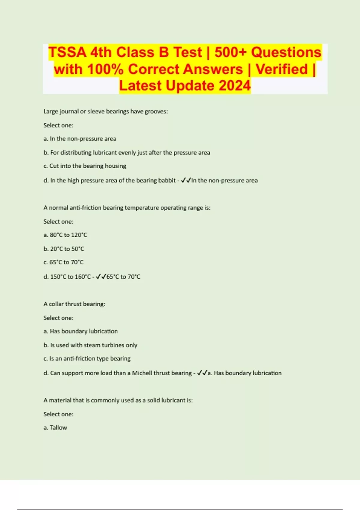 TSSA 4th Class B Test | 500+ Questions with 100% Correct Answers | Verified | Latest Update 2024 | 129 Pages