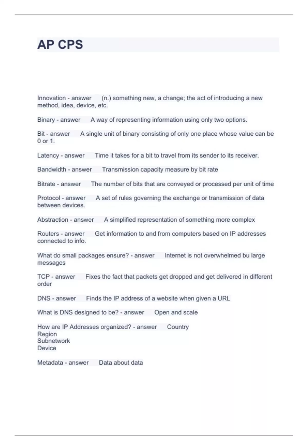 AP CPS QUESTIONS WITH CORRECT ANSWERS