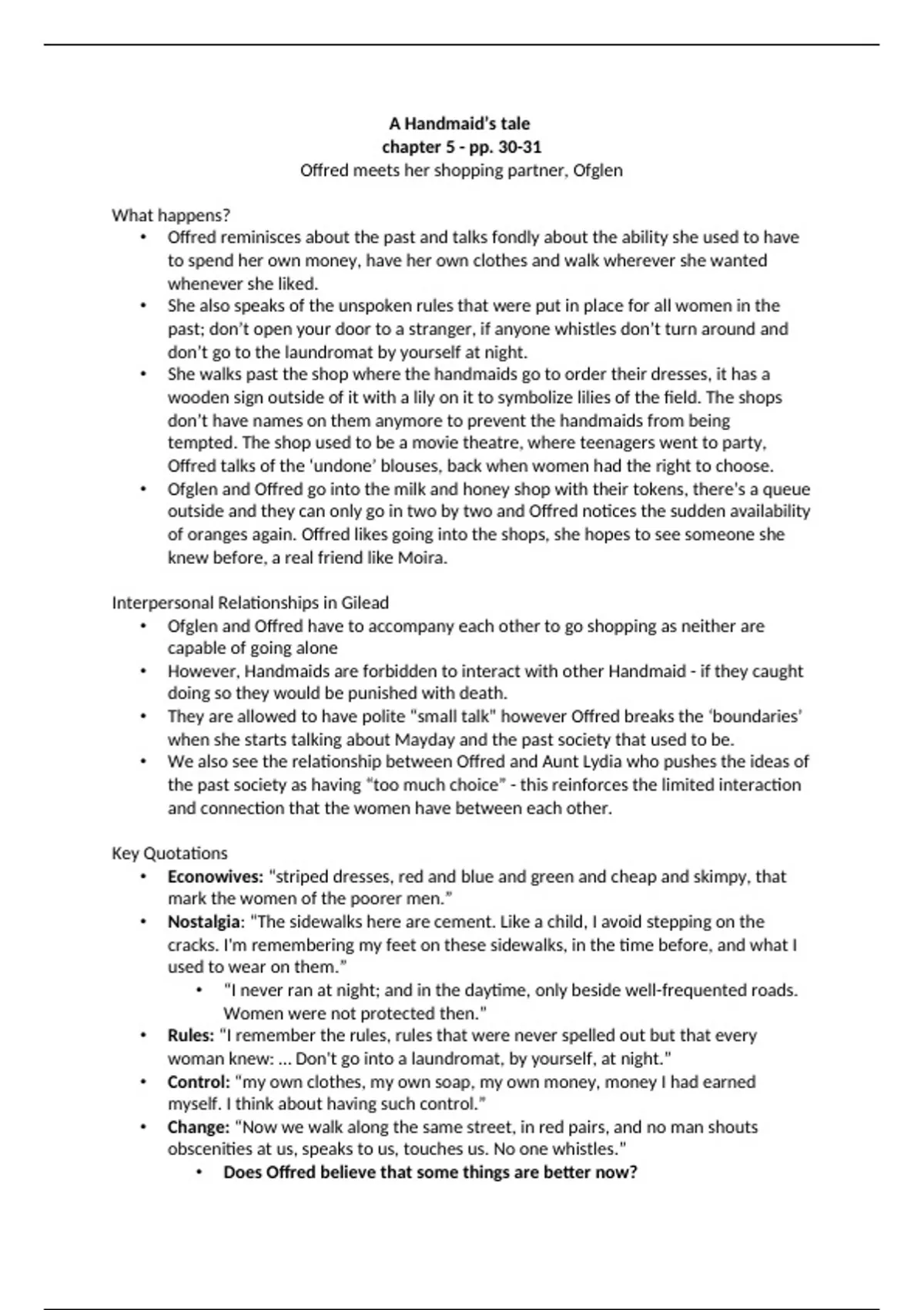 • They are allowed to have polite “small talk” however Offred breaks the ‘boundaries’