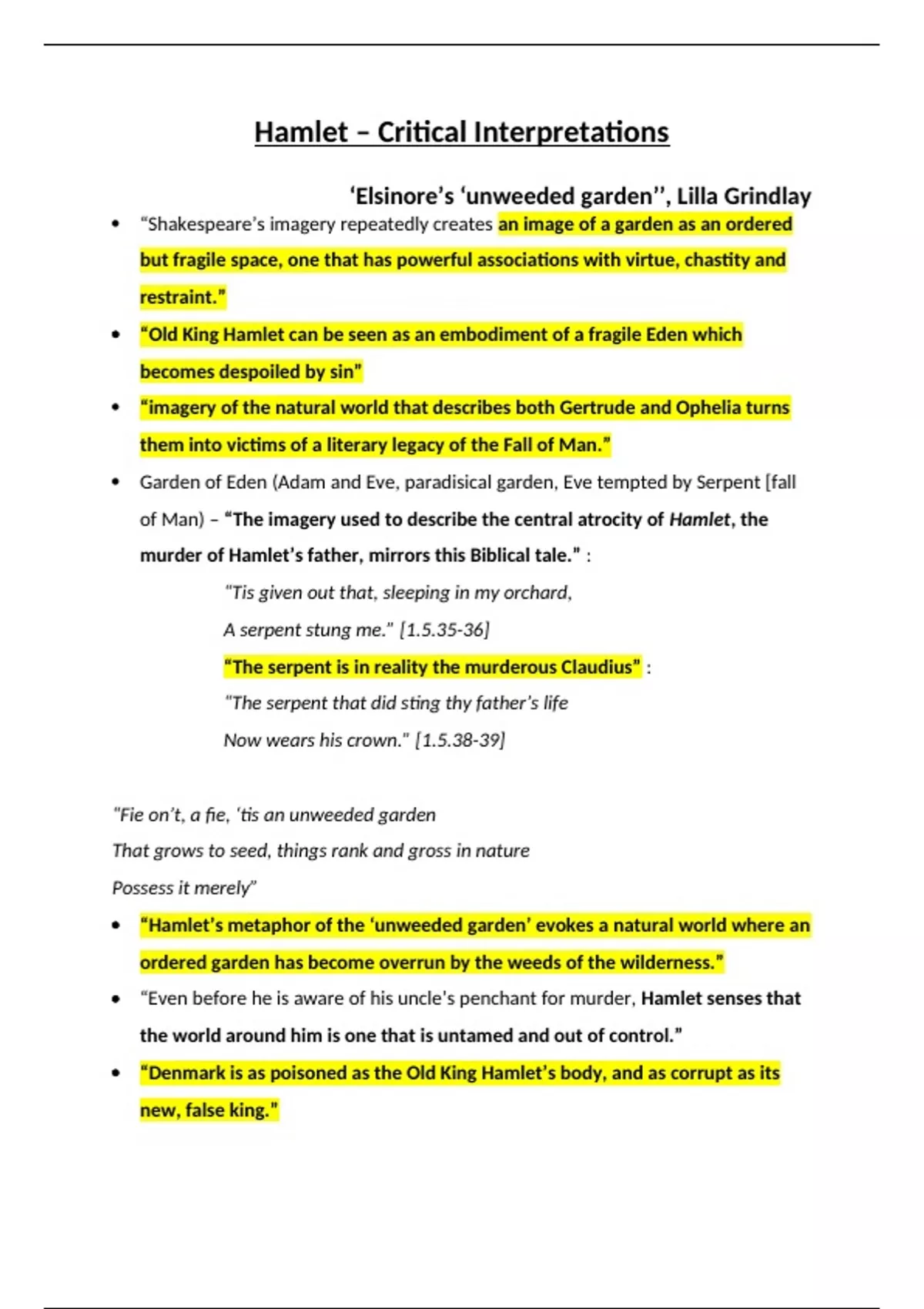 of Man) – “The imagery used to describe the central atrocity of Hamlet, the