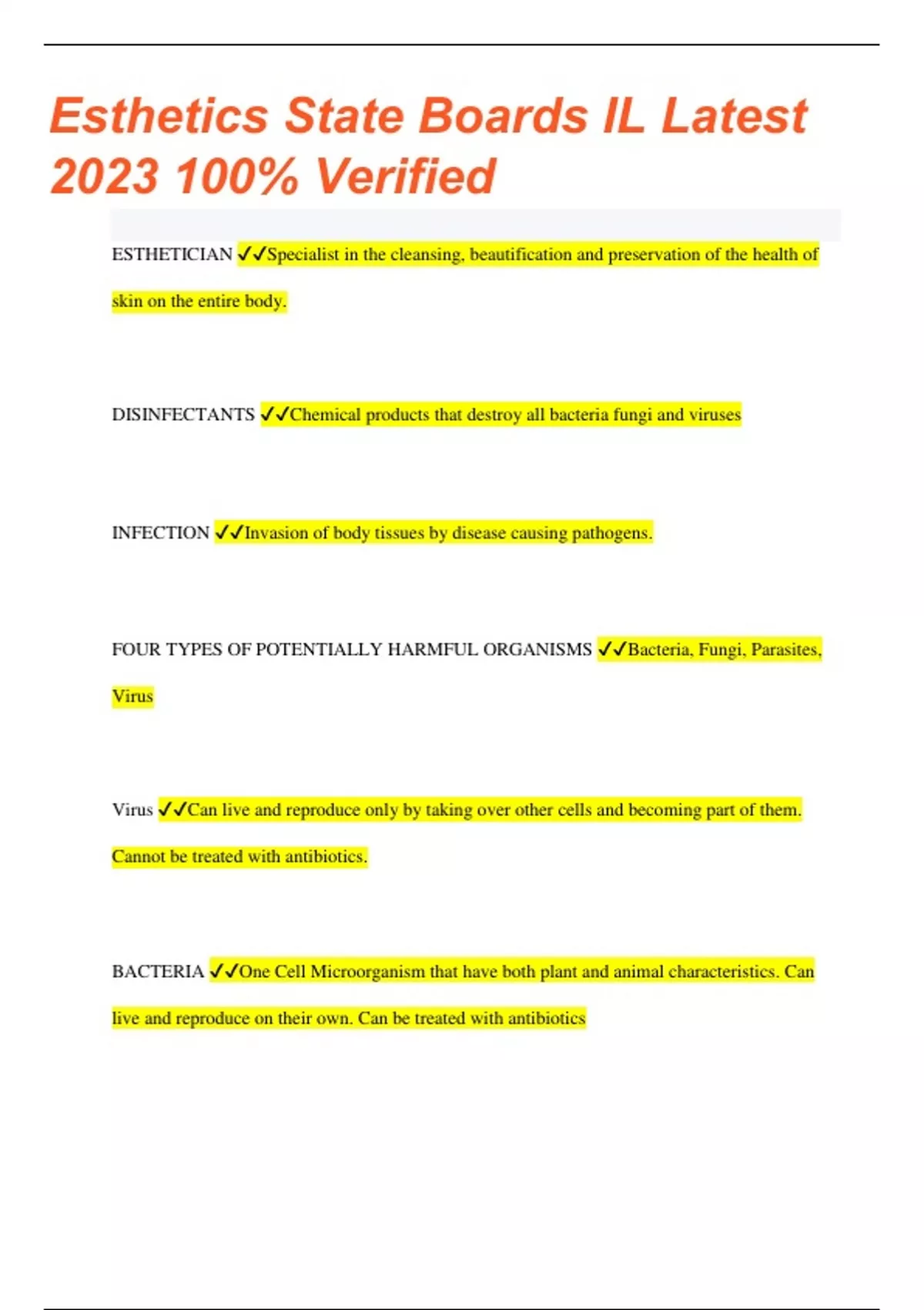 Esthetics State Boards IL Latest questions 100% Verified Answers