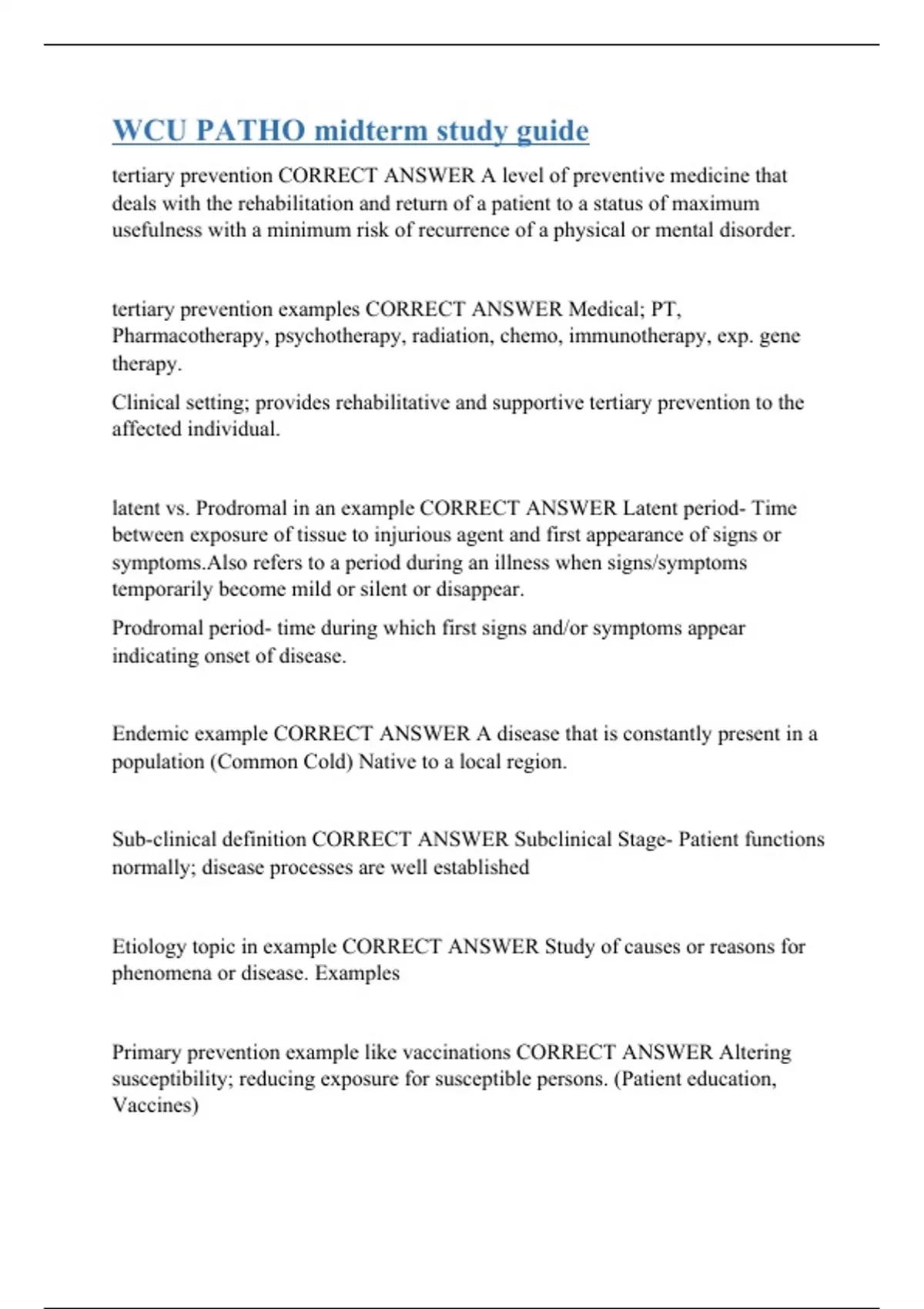 WCU PATHO midterm study guide