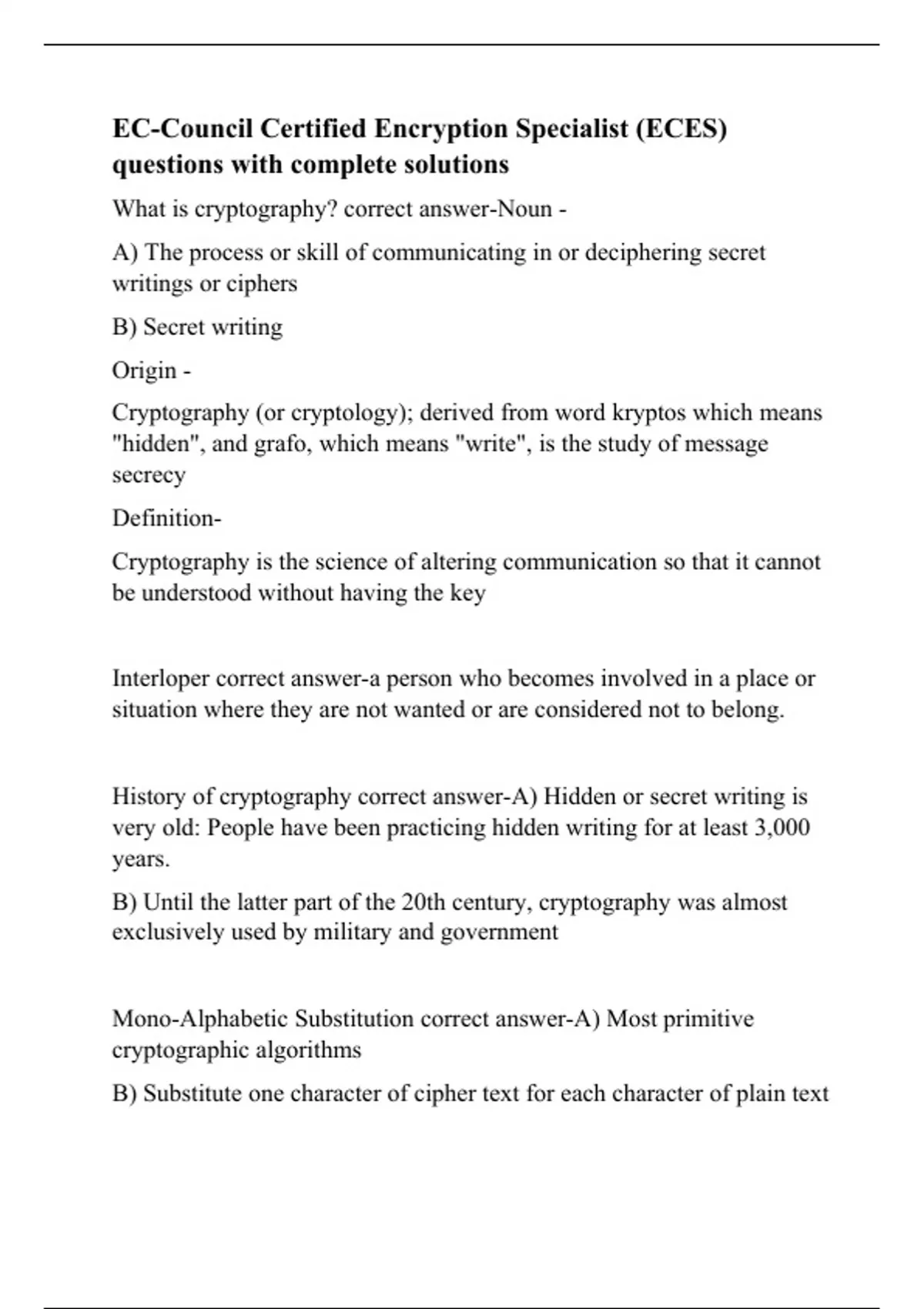 EC-Council Certified Encryption Specialist (ECES) questions with complete solutions