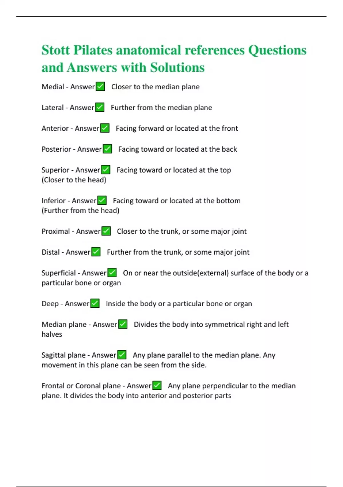 Stott Pilates anatomical references Questions and Answers with Solutions