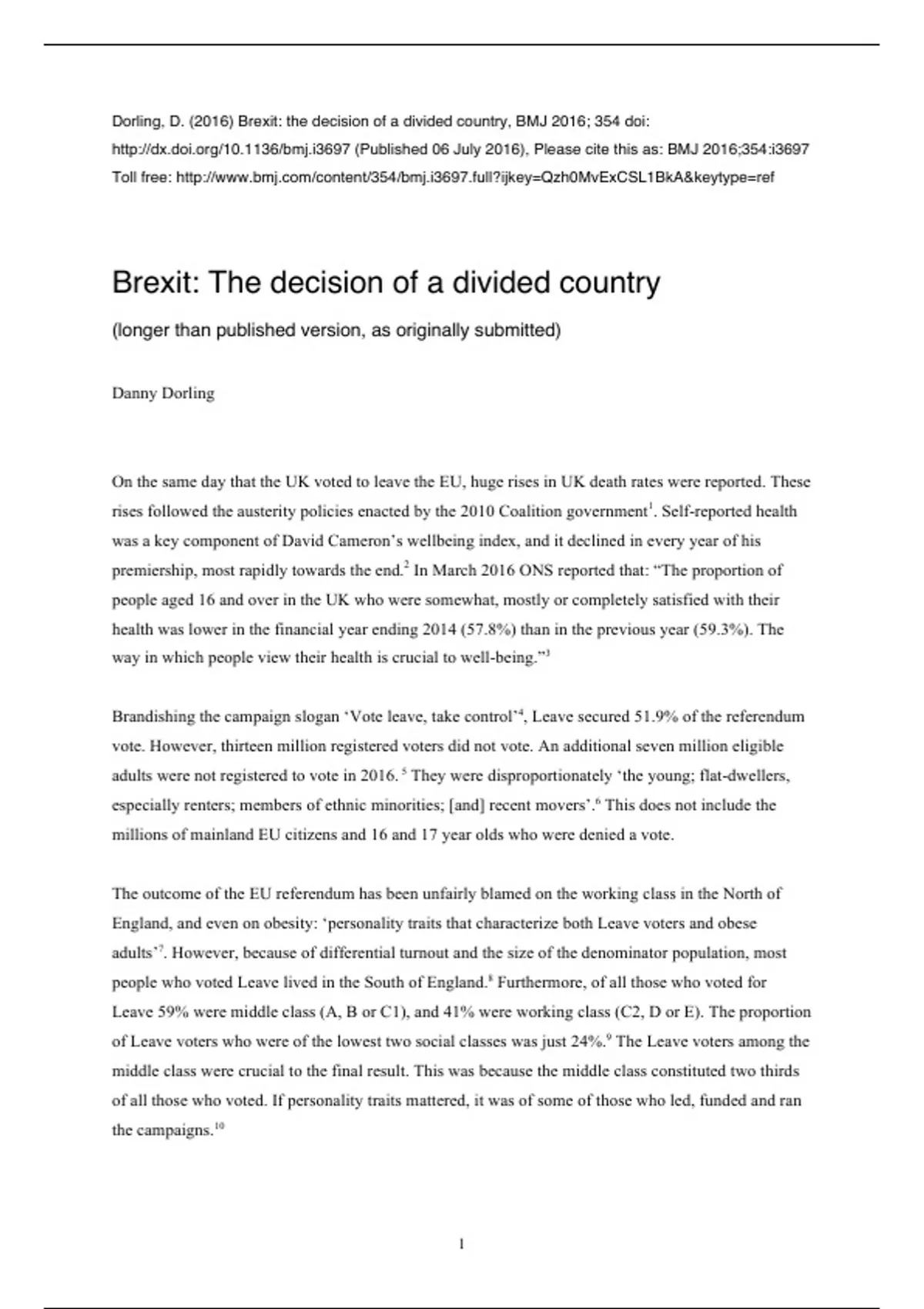Dorling, D. (2016) Brexit: the decision of a divided country, BMJ 2016; 354 doi: