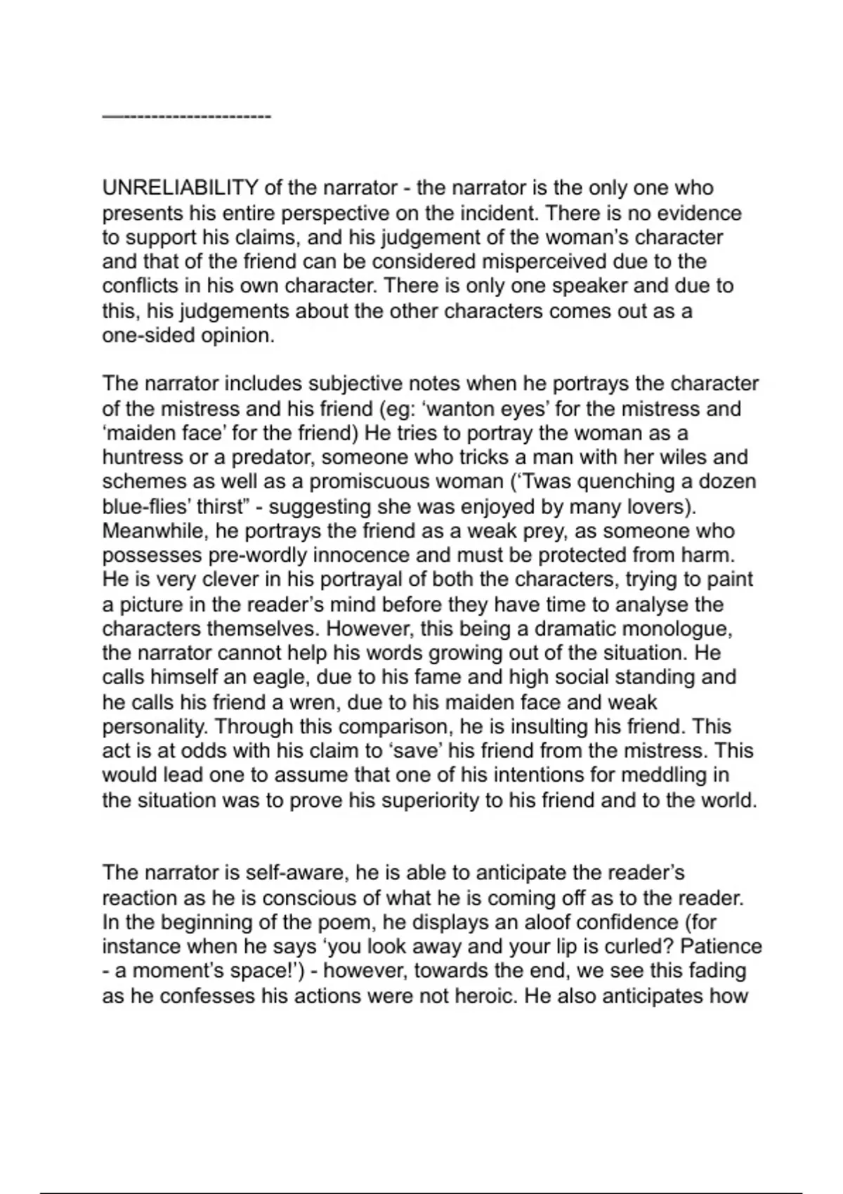 UNRELIABILITY of the narrator - the narrator is the only one who