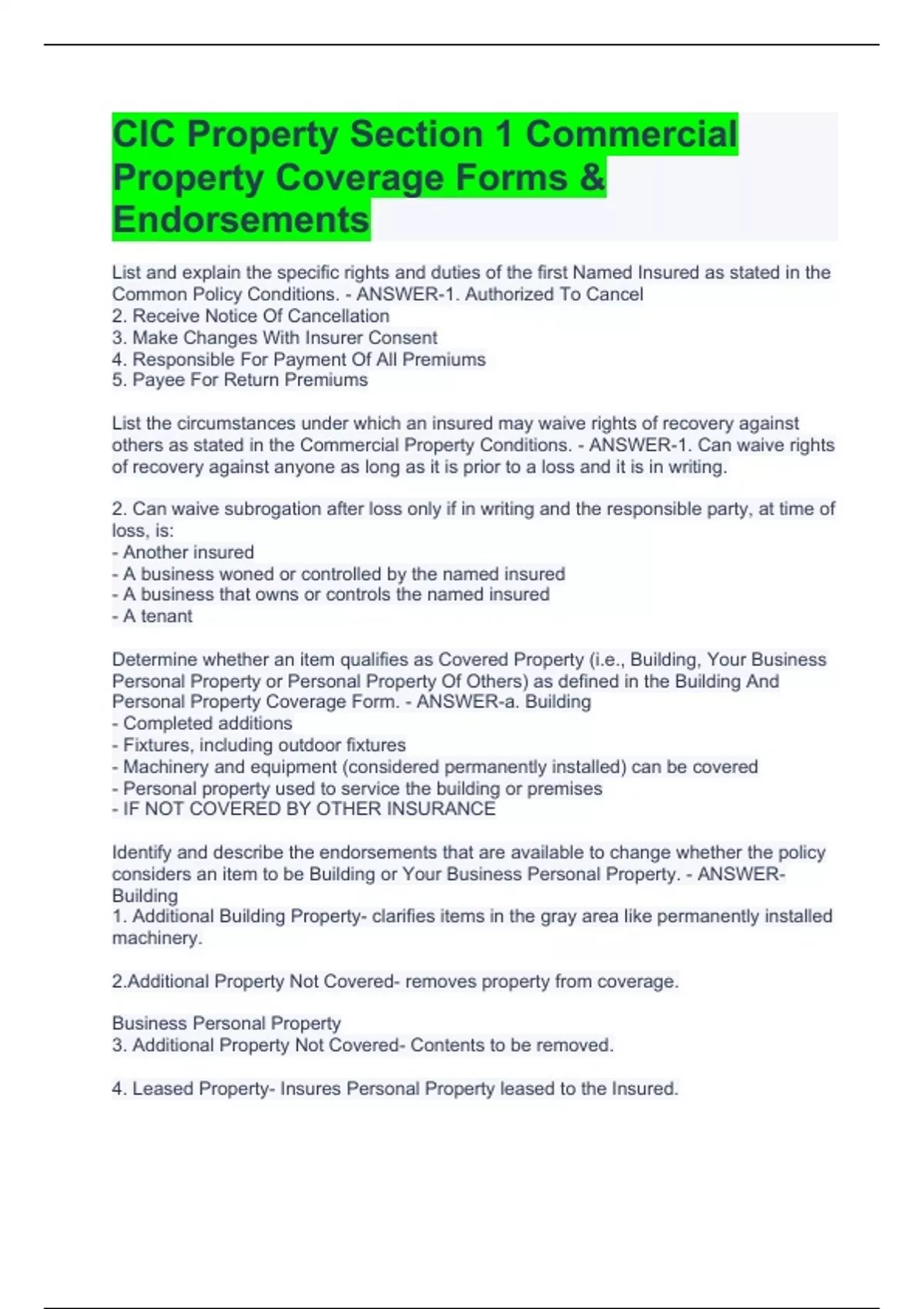 CIC COMMERCIAL PROPERTY EXAMS PACKAGE DEAL -SOLVED