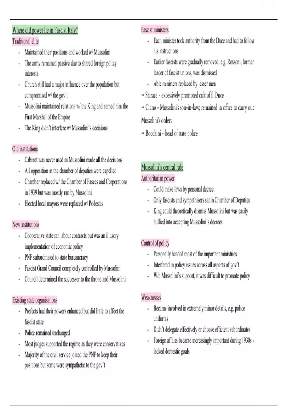 Traditional elite - Each minister took authority from the Duce and had to follow