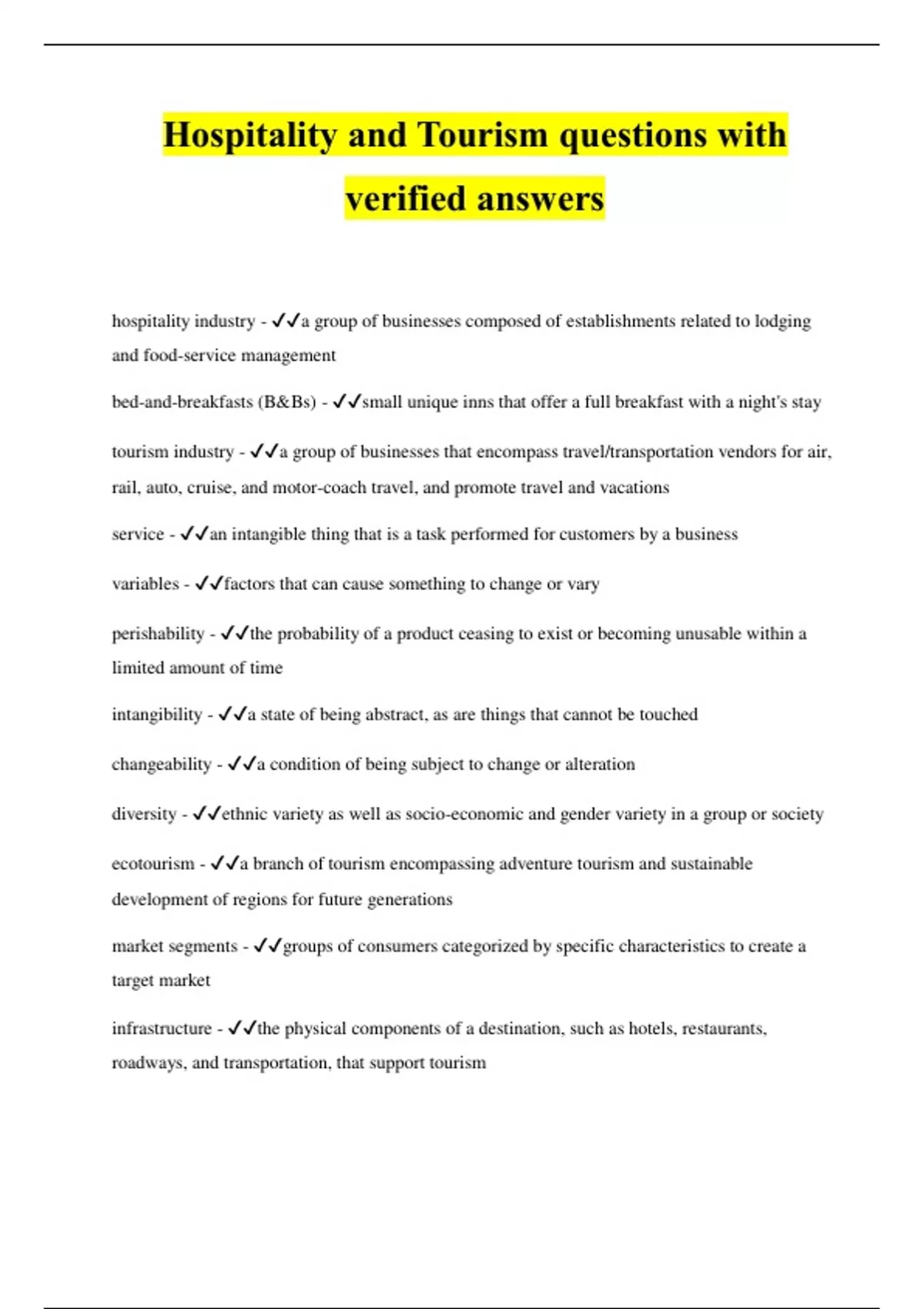 infrastructure - ✔✔the physical components of a destination, such as hotels, restaurants,