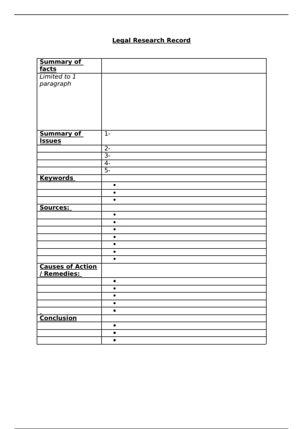 Legal Research Record