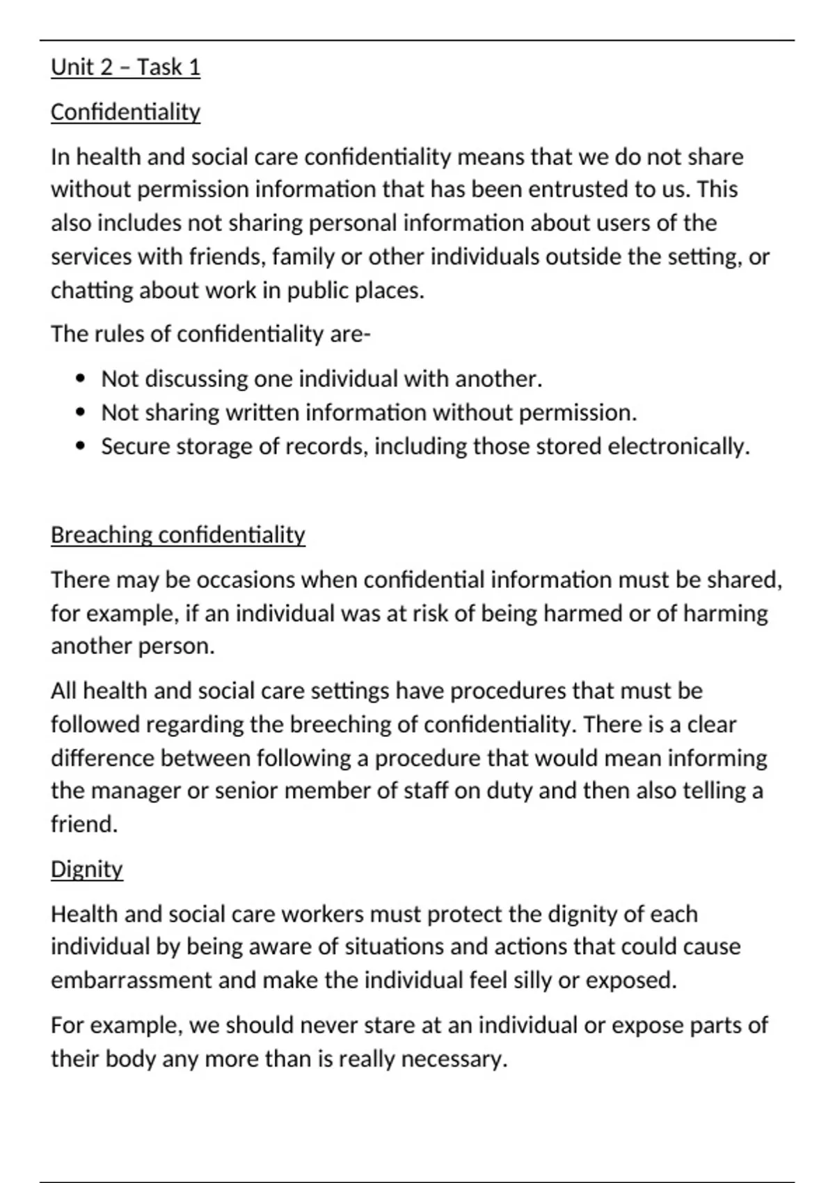 Health and social care workers must protect the dignity of each