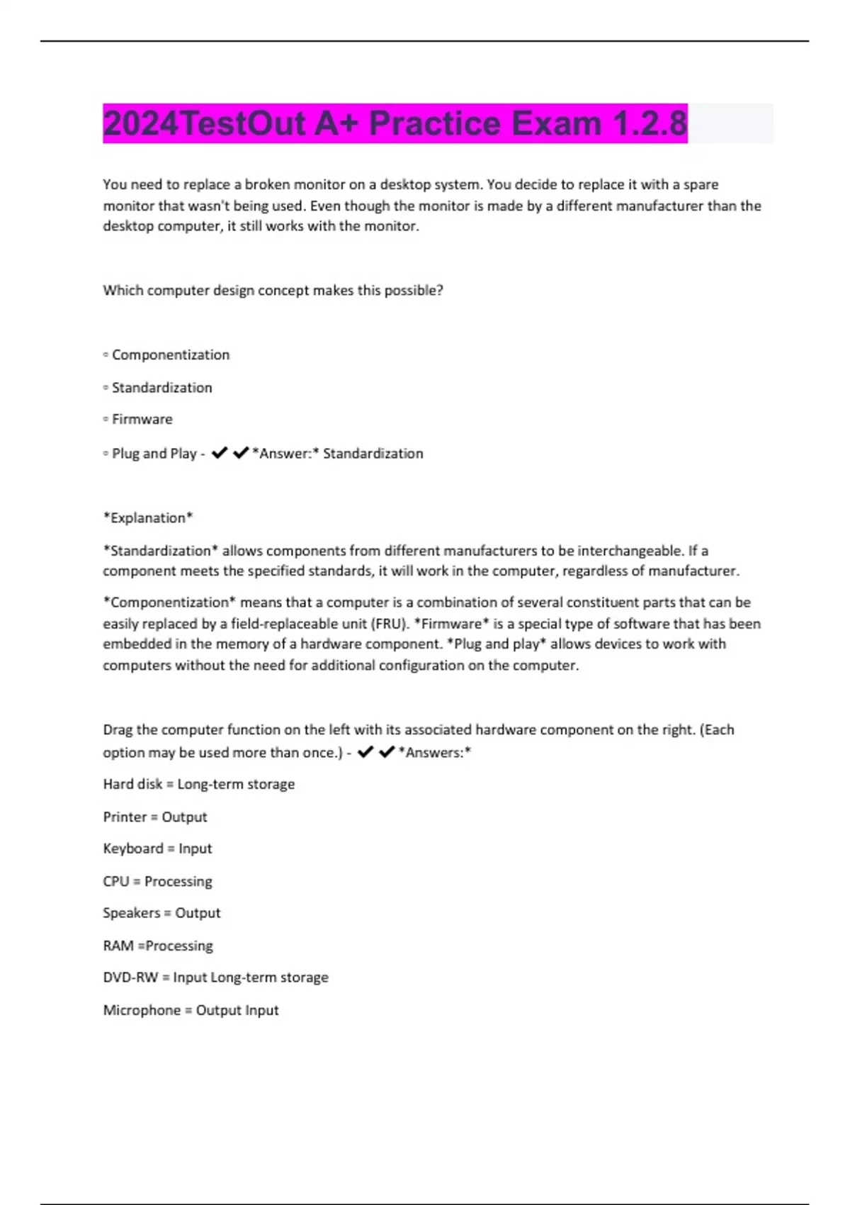 2024TestOut A+ Practice Exam 1.2.8 Questions and Answers(A+ Solution guide)