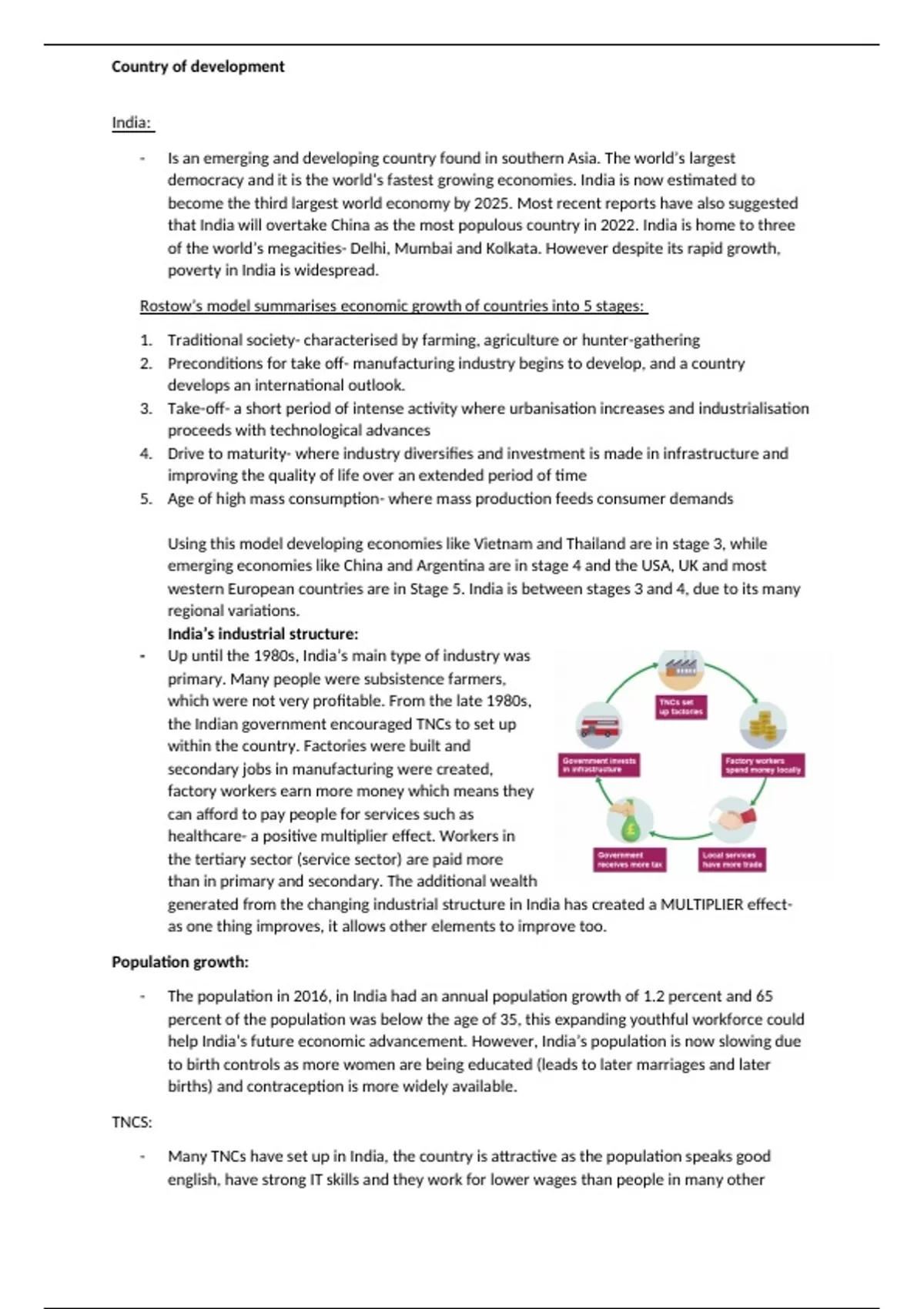 Rostow’s model summarises economic growth of countries into 5 stages: