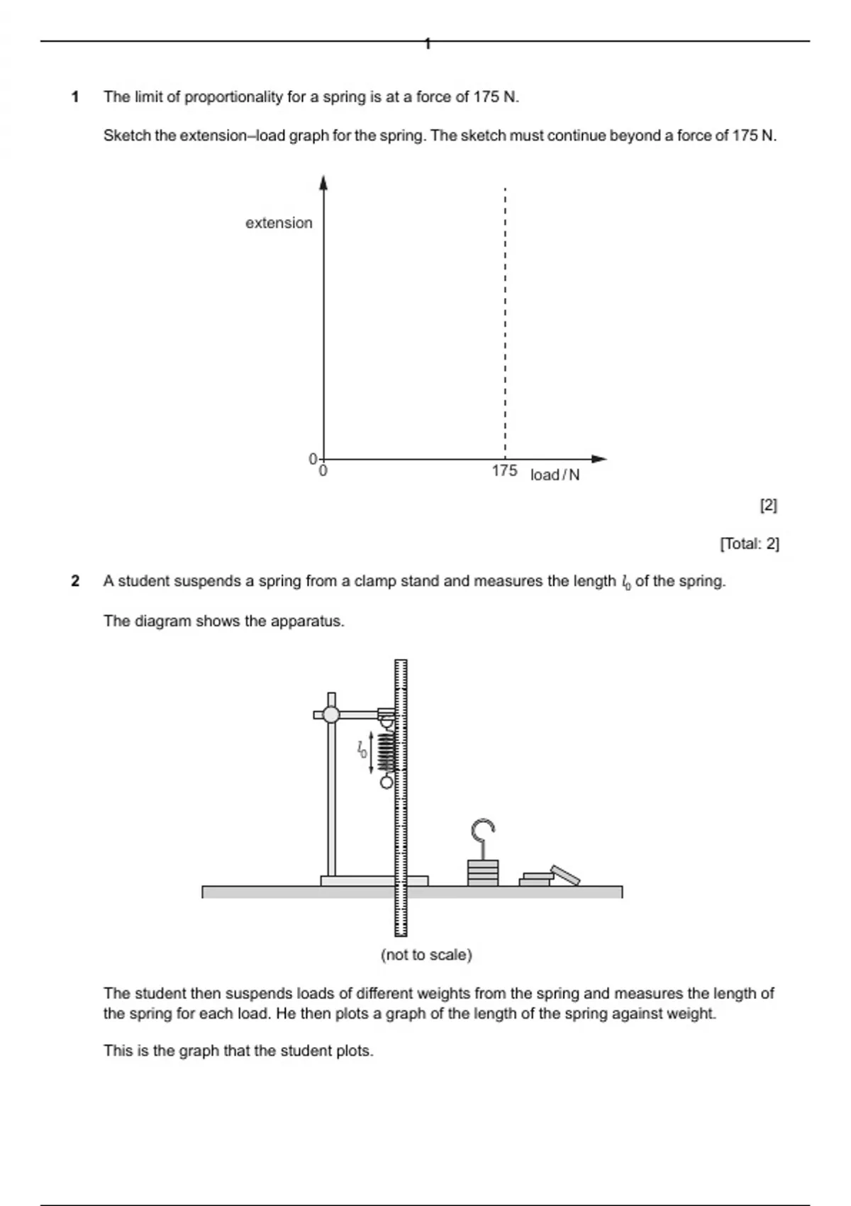 (b) State what is meant by the limit of proportionality and, using the graph, determine the weight