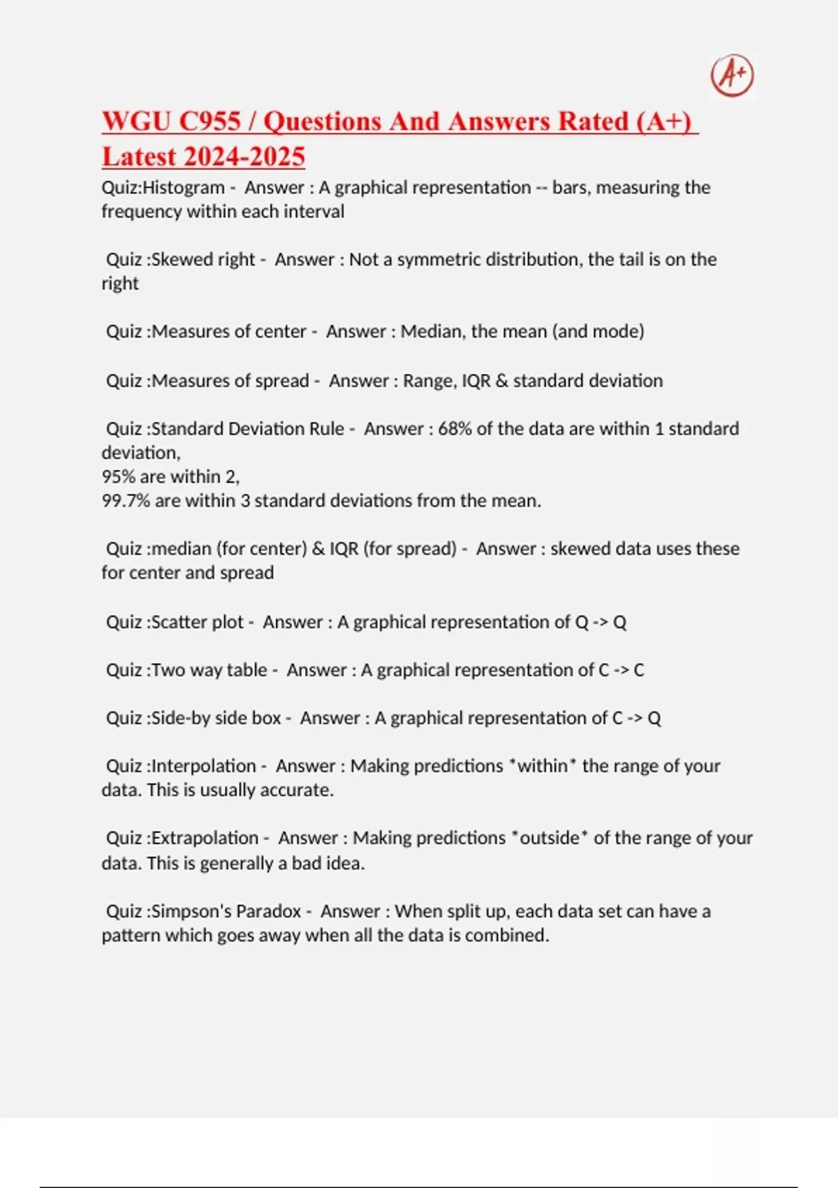 PS: Boost your exam performance with my comprehensive study package Deals {CHECK OUT DISCOUNTS ON MY BUNDLES, I ASLO OFFER PACKAGE DEALS TO ALL MY STUDY MATERIAL} I have developed a range of study materials that cover all aspects of Courses, from the basics to advanced topics. My materials are designed to provide clear and concise explanations of complex concepts, with plenty of helpful examples and practice problems to reinforce your learning. I've received multiple academic awards during my time at university and have been recognized for my excellence in teaching. Download my materials today and start acing your exams! “Thank you in advance for your purchase! If you find my documents to be helpful, write a review! Refer other learners so that they can also benefit from my study materials."