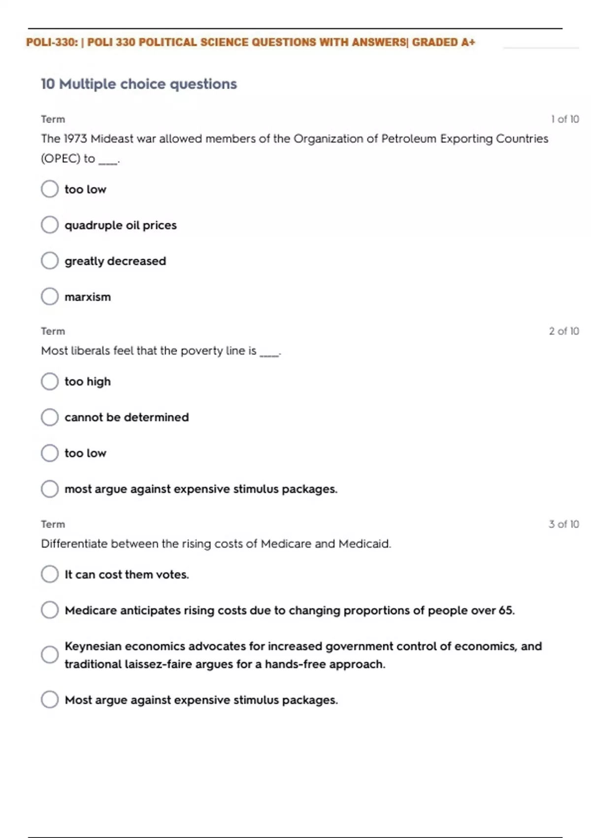 POLI-330: | POLI 330 POLITICAL SCIENCE WEEK6 QUESTIONS WITH ANSWERS| GRADED A+