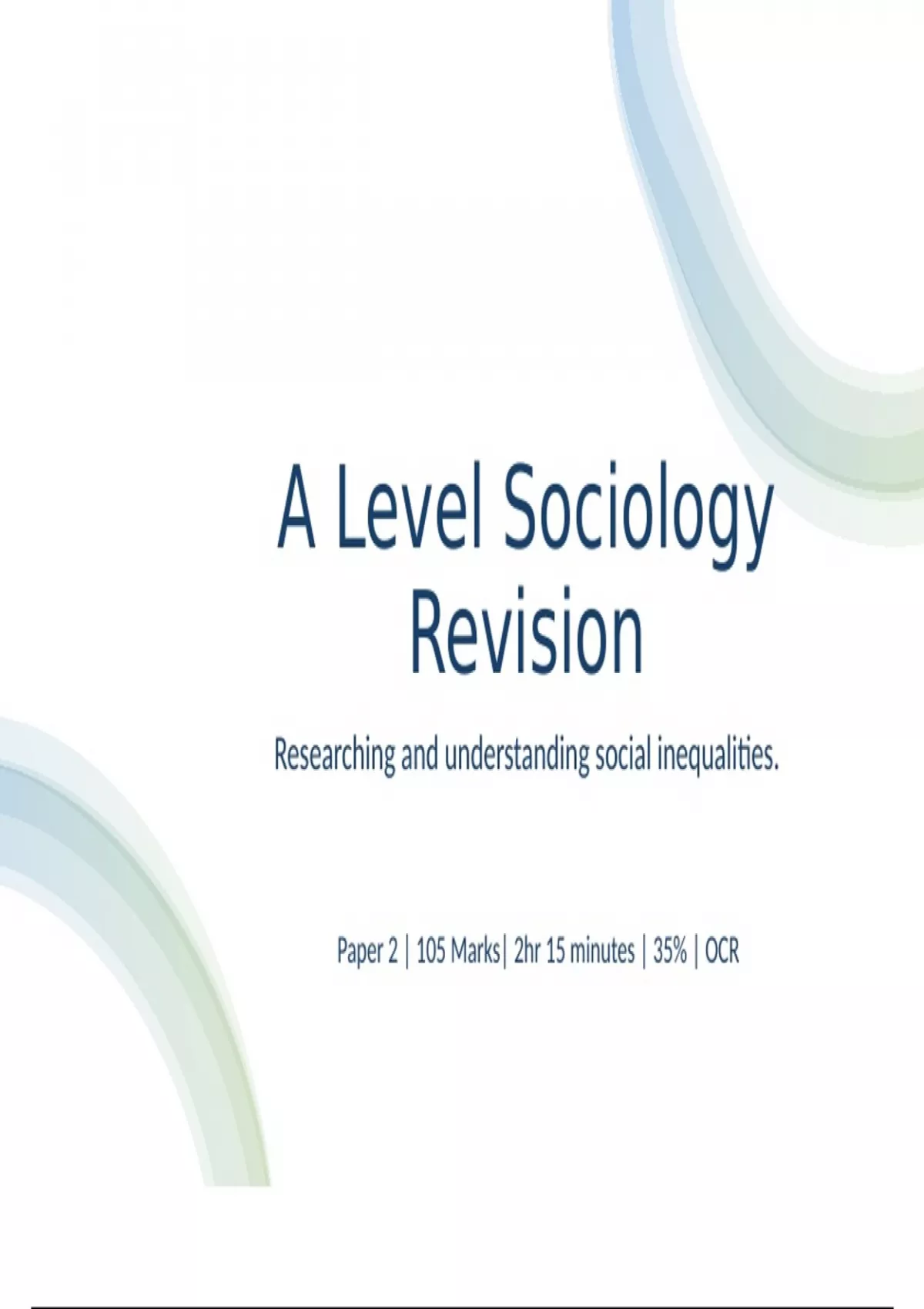 Enhance your A-level sociology preparation with our comprehensive OCR Paper 2 revision guide, focusing on researching and comprehending social inequalities. Explore five distinct types of social inequalities, backed by relevant theories, notable theorists, vital statistics, and credible sources. Elevate your revision experience by delving into crucial quotes, honing your skills through 40-mark question examples. Unleash your potential and master the intricacies of social inequalities with this indispensable tool.