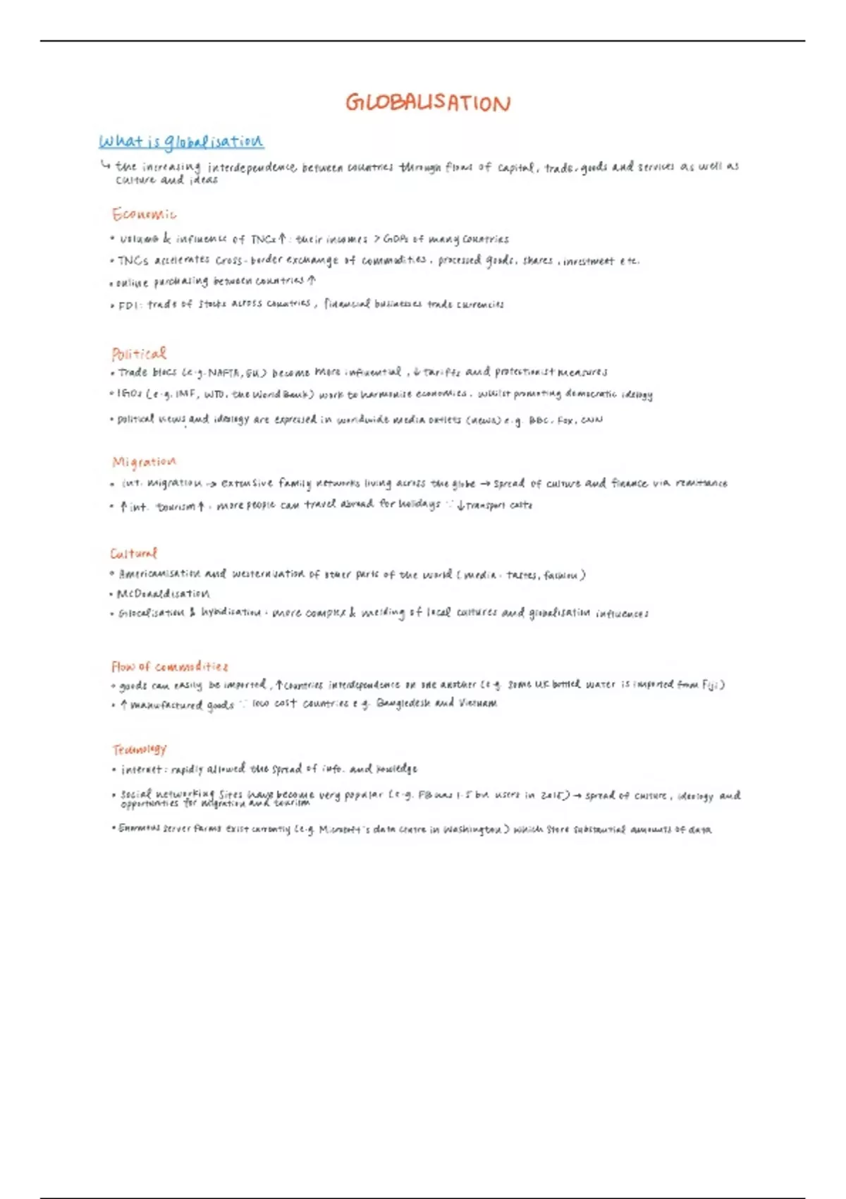 Edexcel Geography A-Level Globalisation Summary Notes