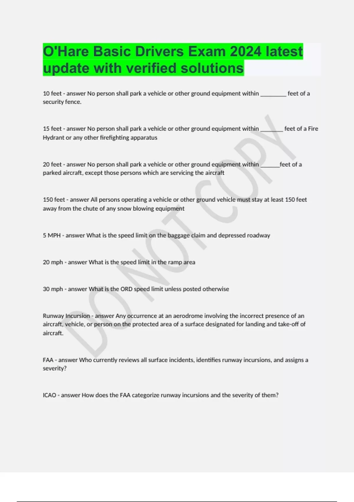 O'Hare Basic Drivers Exam 2024 latest update with verified solutions.