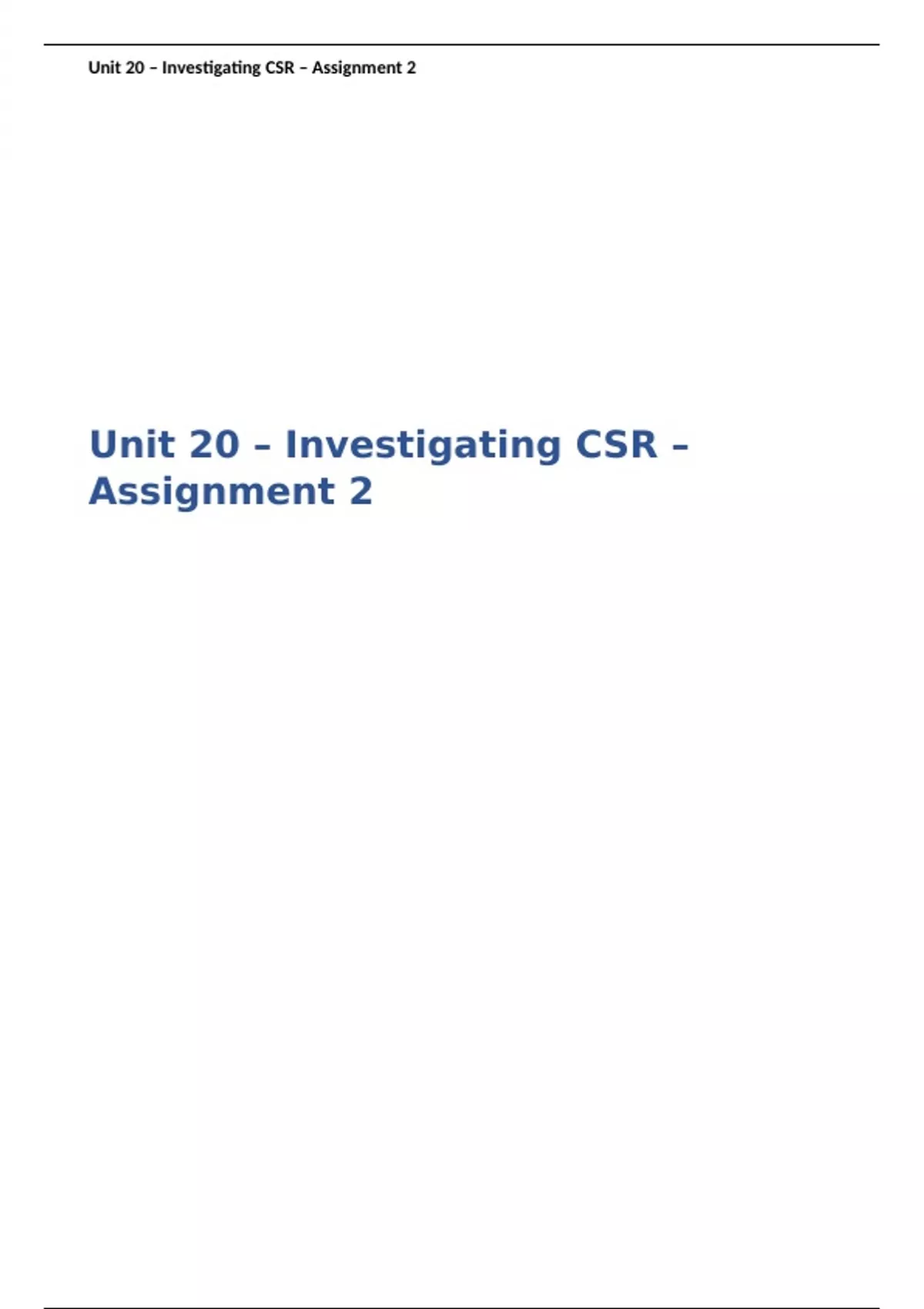 In this first part of the report, I am going to investigate the potential benefits of the CSR policy of a
