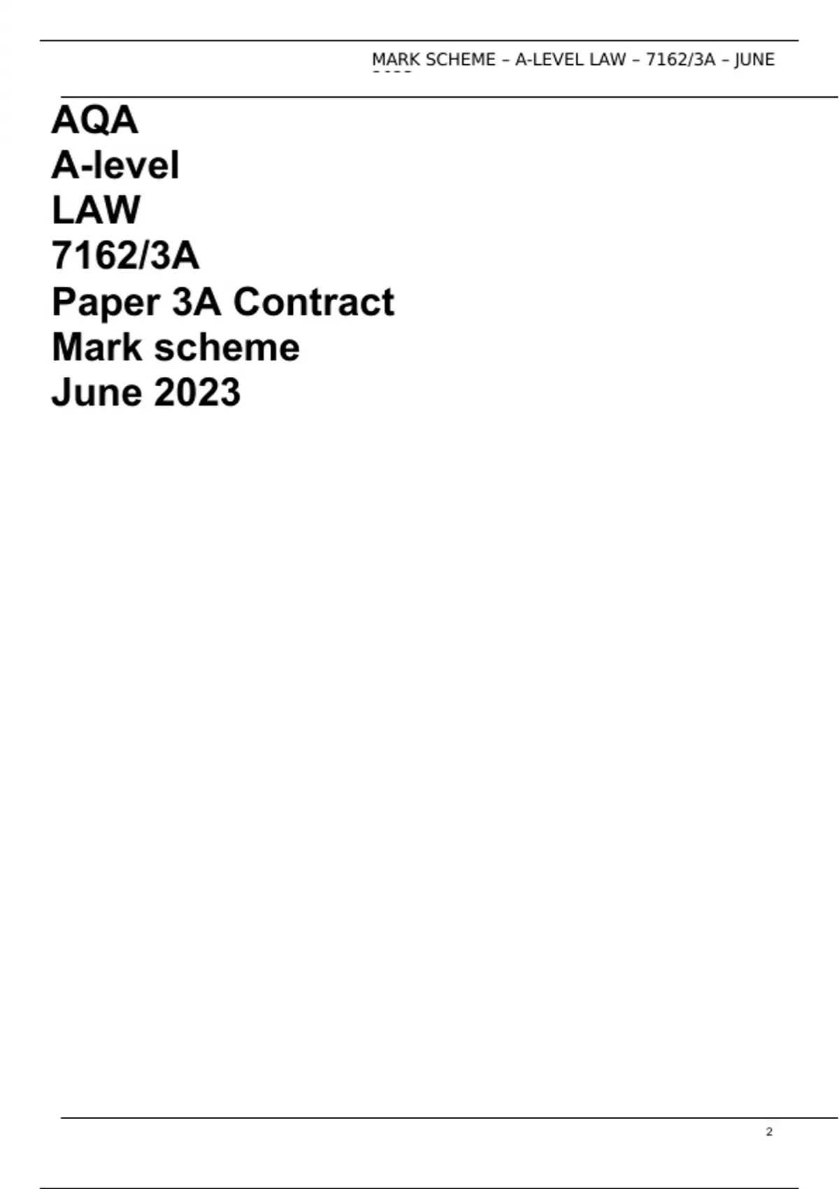 AQA A-level LAW 7162/3A Paper 3A Contract Mark scheme June 2023