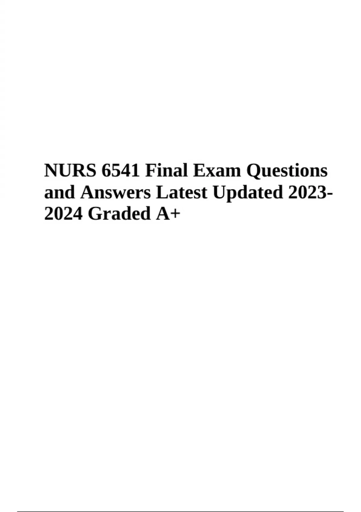 NURS 6541 Final Exam Questions and Answers Latest Updated 2024 (Graded A+)