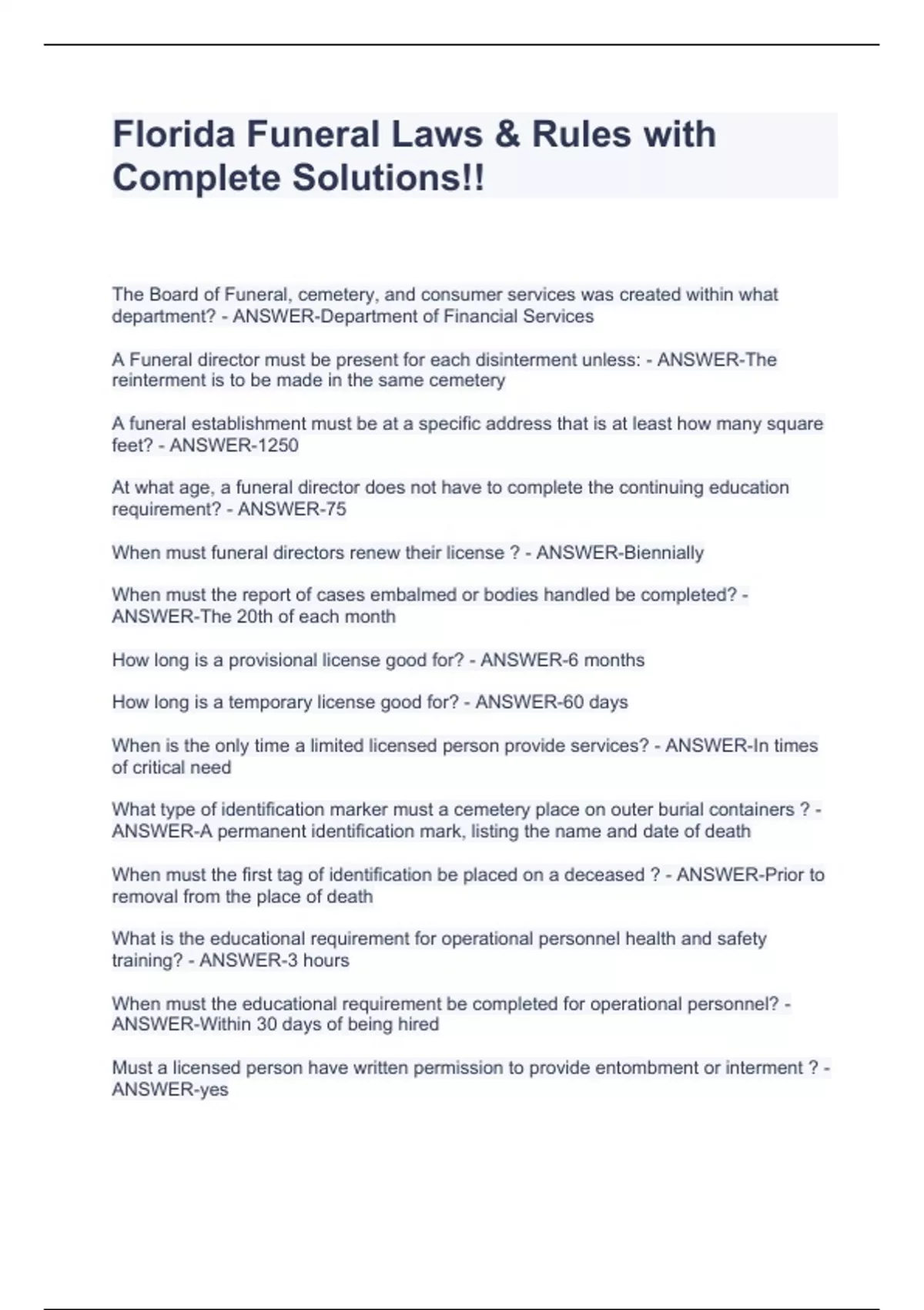 When must funeral directors renew their license ? - ANSWER-Biennially